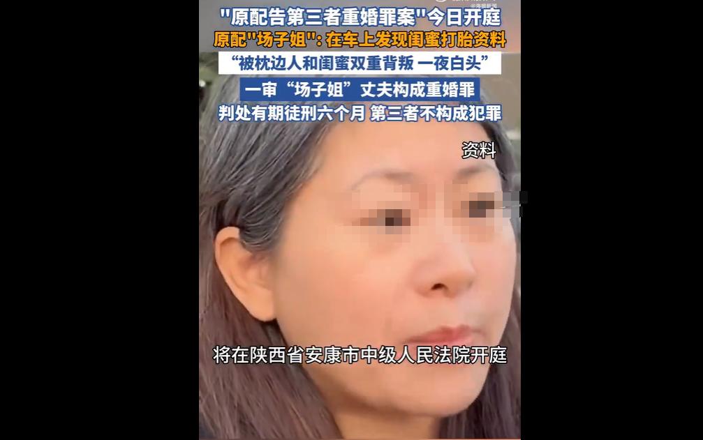 12月26日,陕西安康中院开庭审理原配“场子姐”诉第三者重婚罪一案。 “场子姐”称,曾在丈夫车内发现闺蜜的打胎资料,劝闺蜜退出反被拉黑,遭丈夫与闺蜜双重背叛后一夜白头。 2023年一审认定其丈夫构成重婚罪,判6个月有期徒刑,第三者不构成犯罪;2025年6月二审驳回其上诉,维持原判。 “场子姐”坚持认为第三者应担责,遂再次提起申诉。据悉,其丈夫曾为小网红,与闺蜜因合作相识,二人曾长期以夫妻名义同居。 这闺蜜心太毒太阴狠! 明知对方是闺蜜的丈夫,还勾搭在一起甚至怀孕打胎,被发现后不仅不羞愧,反而拉黑闺蜜,简直是披着“好姐妹”外衣的毒妇! “场子姐”当初还觉得离异带娃的她不容易,真心待她,结果换来背后捅刀,这种踩着闺蜜感情上位的货色,连最基本的人品都没有! 那为人丈夫的更渣! 身为已婚男人,坐拥家庭还当网红搞婚外情,和妻子的闺蜜苟且,甚至逼儿子认第三者为“妈”,毫无道德底线可言! 让人意不平的是,明明两人长期以夫妻名义同居,第三者也明知对方已婚,却因证据不足等原因不被认定重婚罪,让第三者钻了漏洞,这判决难免让人心塞!女子被丈夫闺蜜双重背叛一夜白头