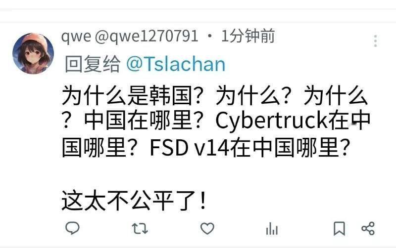 特斯拉FSD14在韩国开始一个月的免费试用国内车主心态崩了,等了好几年,只有追着问再猜测一下,英伟达h200明年2月份入华,特斯拉fsd有在美国训练好的基础模型,在中国只需要根据本地数据进行微调,大概所耗用的算力也就是在美国算力的10%左右也许一个月左右就能训练完成并验证所以FSD14的中国满血版,可能就在明年一季度自动驾驶新能源汽车特斯拉fsd