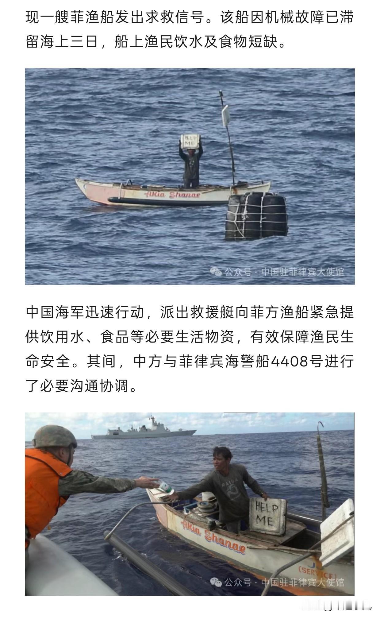 中国海军救助菲猴儿,让我又看不懂了…… 报道中,写道,其间,中方与菲律宾海警船4408号船进行了必要沟通协调,还说这艘菲律宾小渔船已经在海上漂泊三日,船上渔民饮水和食物短缺! 这意思,也就是说,菲律宾海警船就在附近,他们自己的渔民没水和食物,他们自己都不管?还是我们不让菲猴海警船进入相关区域呢?如果不让海警船进入相关区域,那么,菲猴儿渔船又怎么进来的? 咱们还是太仁慈了,有些事,总拖着注定不是好事,老美又宣布对台大规模军售了,咱就说,到时候,能不能把它运送武器的船直接扣押了,总是那些反制措施,人家压根不痛不痒…… 大家觉得呢?评论区说说你的看法!