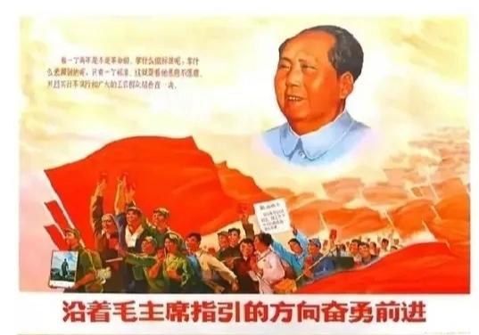 #红色文化# 宣传画欣赏: 《沿着毛主席指引的方向奋勇前进》