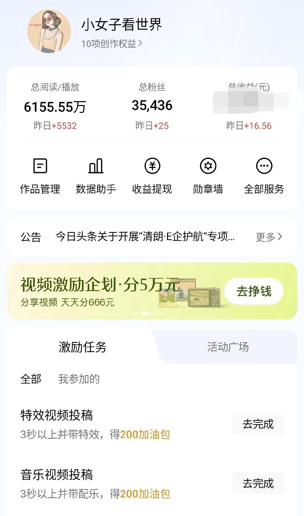 大家有没有和我一样,刚开始写头条的时候,睡觉之前想写一个微头条,但是又一头雾水的不知道写什么,应该怎么开头怎么结尾,即便确定写什么事了,又顾虑写了会不会有流量,有流量了又担心了,担心流量大了会不会收到违规通知,担心没有流量感觉又白写了。 有这种想法的友友不在少数,尤其是刚来头条的新手小白不知道该怎么入手,个人感觉写头条就好比在公司上班,你只要去公司打卡干活或多或少得就有钱拿,如果你请假了不去上班肯定是一分钱都没有的,写头条也是一样的道理,你只要写,哪怕你一天只写一个微头条,只要有展现量就肯定有阅读量,有阅读量就会产生收益。 我刚来头条的时候就像现在的新手小白一样犹豫不决,直到我尝到了甜头,就比如我昨天的收益竟然高达16.56元,我为什么如此激动高兴,大家看看就知道了,是因为昨天的阅读量仅有5532,也就是说千次单价达到了3.2,这是我在头条单价最高的一次。 单价为什么突然会这么高,以我写头条五六年的经验来看,除了写作字数影响单价之外,更重要的是所写内容引起读者的共鸣,激发了读者的热烈讨论,读者能在内容中有收获推高了单价,这是我个人的浅见,希望对大家的写作有帮助。