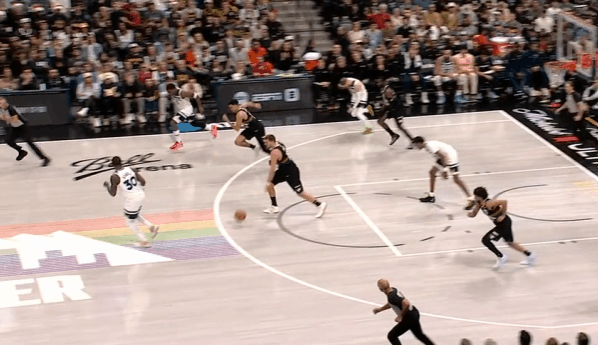 逐帧拆解:圣诞大战超级三双,镜头解析约基奇传球技法图1穆雷佯装执行“Zoom Action”上提接球,实则行进到一半立即反跑摆脱杰登,约基奇人到球到。图2持球推过半场后立即发动和斯特劳斯的反向挡拆,见斯特劳斯并没有获得太多顺下身位优势,佯装传斯特劳斯,实则给到弧顶的穆雷进行第二波挡拆发起:穆雷行进间吸引到兰德尔延误,击地回给顺下约基奇,约基奇接球吸引弱侧45°里德回收协防,立即找到左翼出现机会的沃特森。图3持球推过半场混乱局面下佯装传给右路跟进的沃特森,实则在跳起后不看人传球找到借助广阔中路空间切入篮下的哈达威。图4拿到地板球后持球推动反击,眼观六路观察防守后球领人直塞找到左路跟进的穆雷。图5自行持球推过半场后,借助哈达威“幽灵掩护”起手行进至低位转背身。遭遇华子强侧夹击后立即回给强侧接应出现空位机会的哈达威。图6上线持球和穆雷发动反向挡拆配合,穆雷无球摆脱迪文外弹至三分线外获得出手机会,约基奇佯装投篮误导防守后立即给到穆雷。NBA 谁是圣诞大战MVP 约基奇超豪华三双
