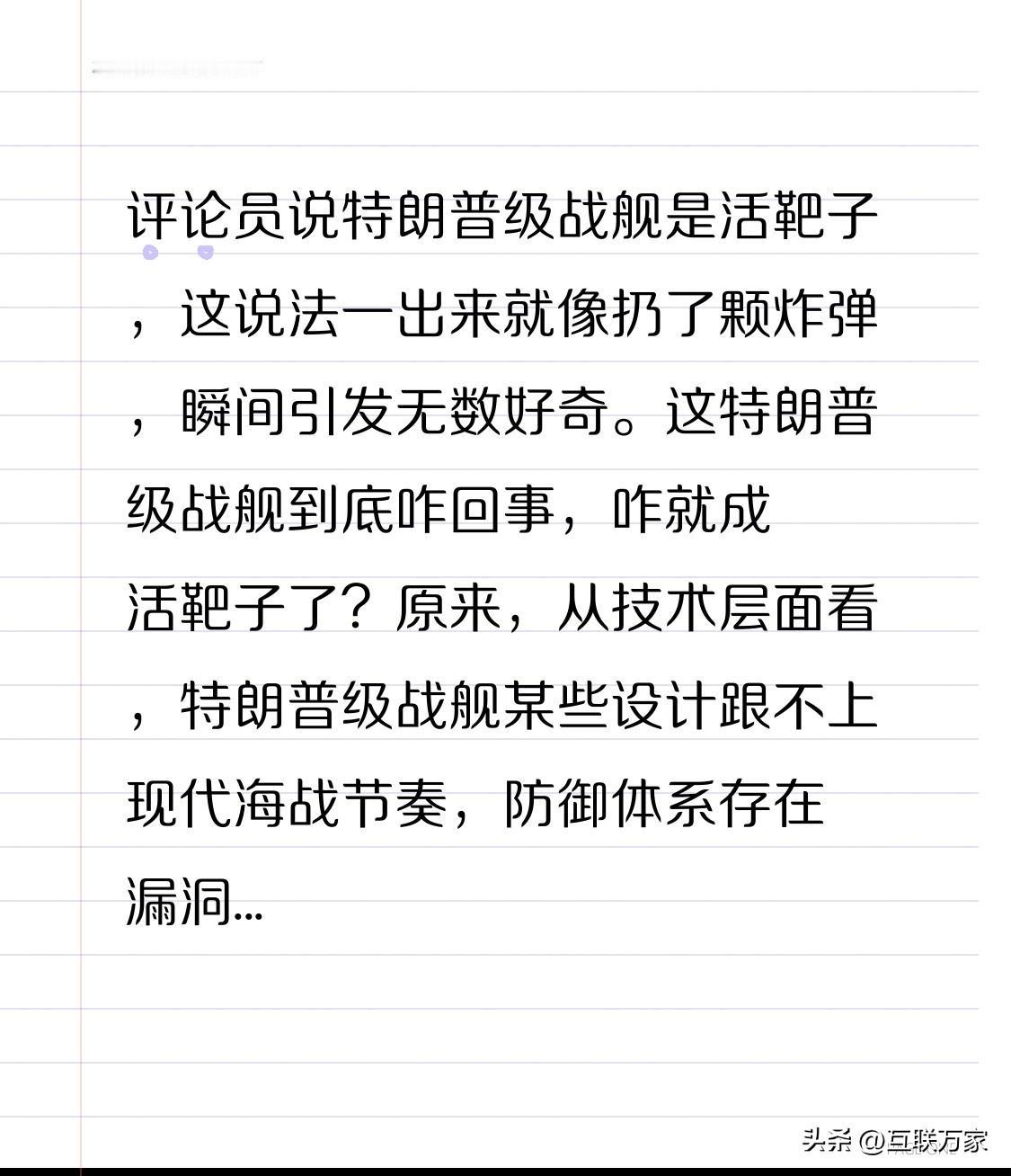 评论员说特朗普级战舰是活靶子,这说法一出来就像扔了颗炸弹,瞬间引发无数好奇。这特朗普级战舰到底咋回事,咋就成活靶子了? 原来,从技术层面看,特朗普级战舰某些设计跟不上现代海战节奏,防御体系存在漏洞,在复杂多变的战场环境下,很容易成为敌方攻击的目标。比如在面对先进的反舰导弹时,它的反应和防御能力可能捉襟见肘。 这让人不禁思考,所谓的先进战舰为何会有如此大的短板?未来海战中,它还能有立足之地吗?大家觉得特朗普级战舰还有翻身的可能不?它的命运会走向何处?现代海战中还有哪些战舰可能面临类似困境? 聊特朗普 特朗普雷人言论 特朗普外交突袭 特朗普困局 特朗普20条 特朗普芯片战略 特朗普思维