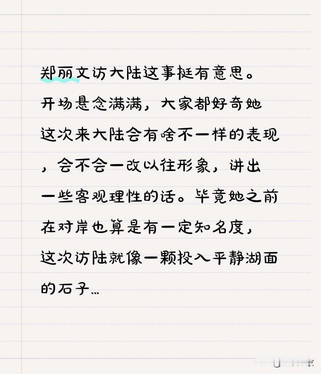 郑丽文访大陆这事挺有意思。开场悬念满满,大家都好奇她这次来大陆会有啥不一样的表现,会不会一改以往形象,讲出一些客观理性的话。毕竟她之前在对岸也算是有一定知名度,这次访陆就像一颗投入平静湖面的石子,激起了不少浪花。 访陆过程里,她真讲了不少人话,没有再像以前那样满嘴偏见。比如谈到两岸交流合作的重要性,能站在客观角度分析利弊,这一点还是值得肯定的。 结尾来个开放式互动就更妙了,给大家留下了想象和讨论空间。网友们也能各抒己见,进一步促进两岸民众的思想碰撞。说不定通过这样的互动,能让更多人理解两岸一家亲的理念。 台湾省郑丽文 郑丽文怒呛 郑丽文简历 郑丽文拒美邀约 郑丽文跳舞 台湾省郑丽文 郑丽文访大陆 郑丽文怒呛 郑丽文简历 郑丽文拒美邀约 郑丽文跳舞 郑丽文红歌
