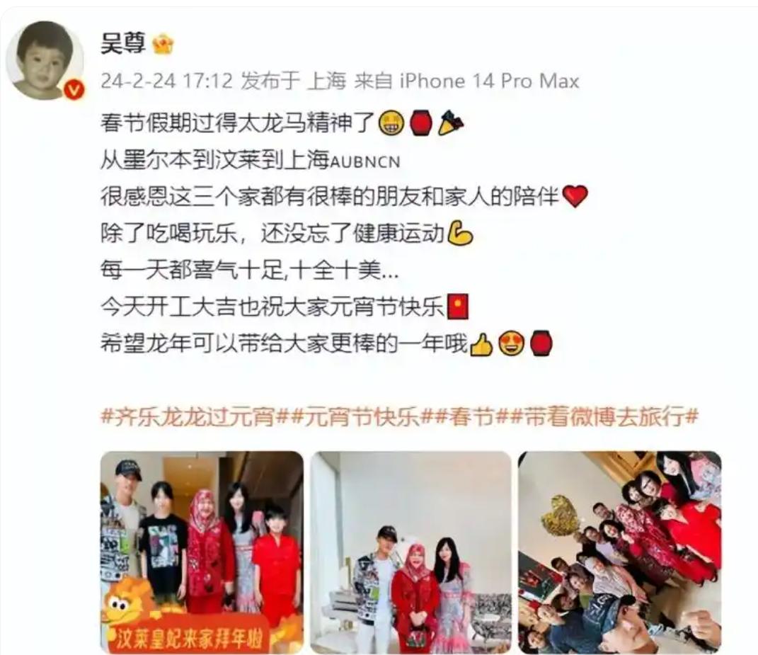 吴尊夫妇在家里接待文莱皇妃,夫妇俩都没有穿鞋,是有什么讲究吗? 都知道吴尊家族在文莱属于高阶,却没想到和皇族关系也十分密切,2024年春节,文莱皇妃亲自到吴尊家拜年,对于这一盛事,吴尊一家也是做了十分充足的准备。 从现场合影看,吴尊一大家全部出动,大家都兴高采烈欢迎皇妃的到来,准备了丰盛的食物,每个人都盛装出席,令人不解的是,除了皇妃,其他人都没有穿鞋,难道不穿鞋是对皇妃的尊重吗?这是文莱的什么习俗?