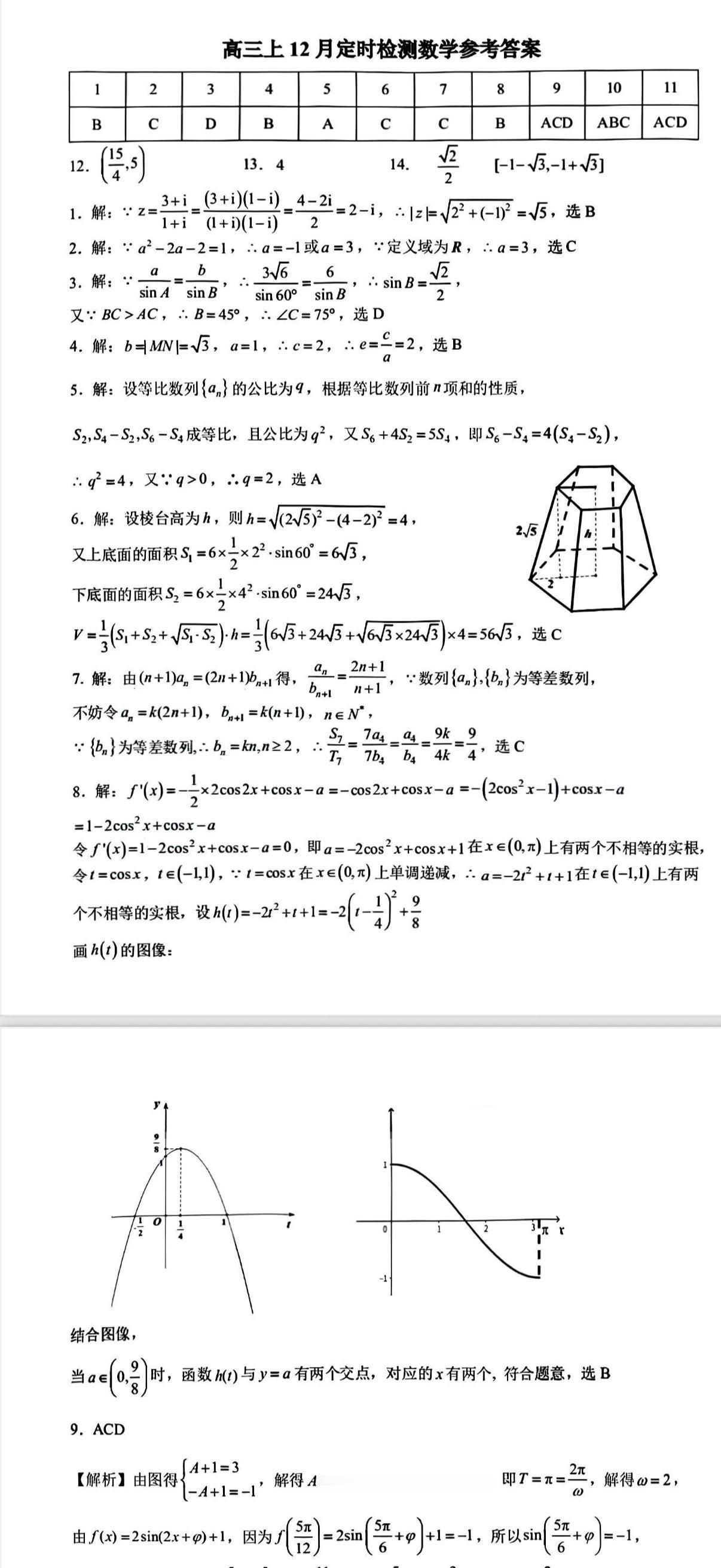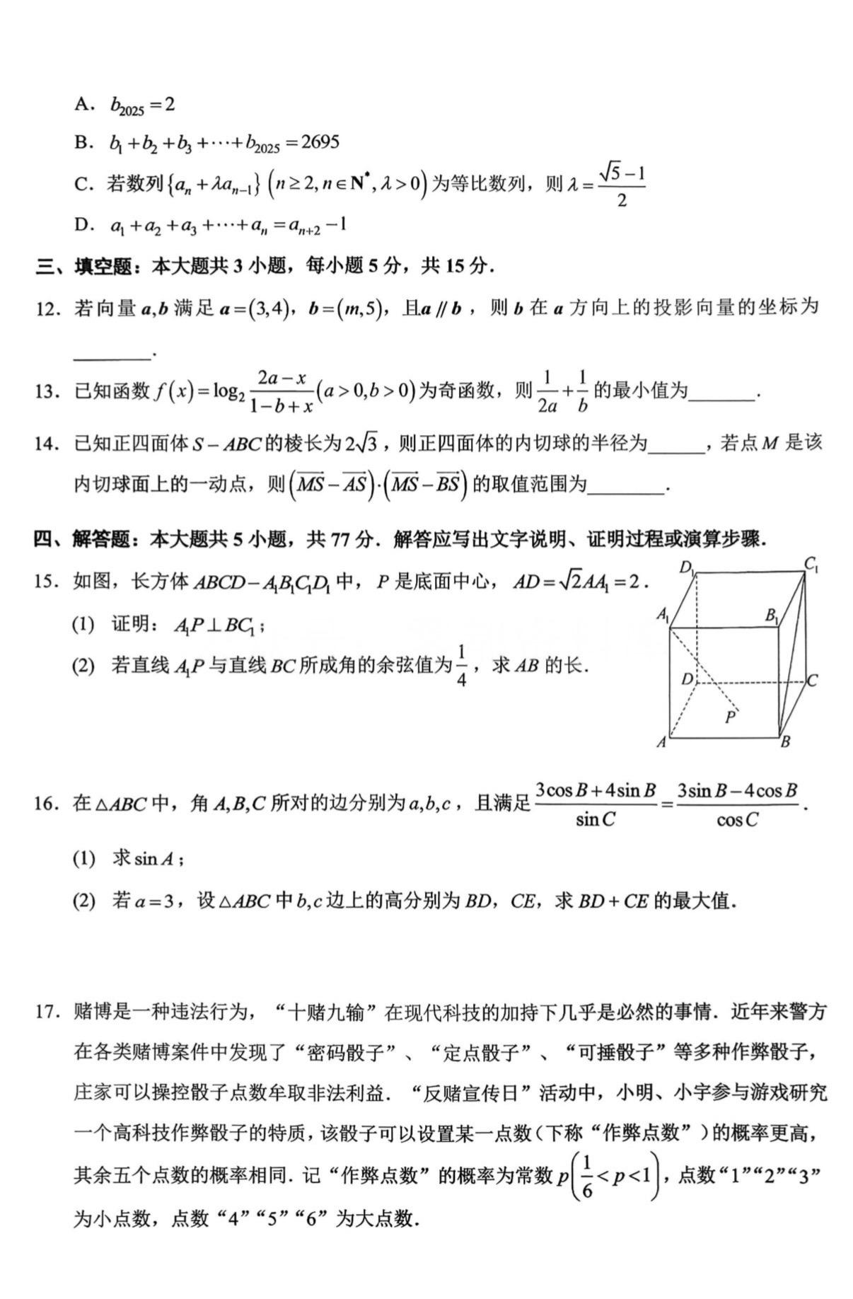 合肥一中2026届高三12月月考数学试题,因为一轮复习没结束,概率、解析几何没考