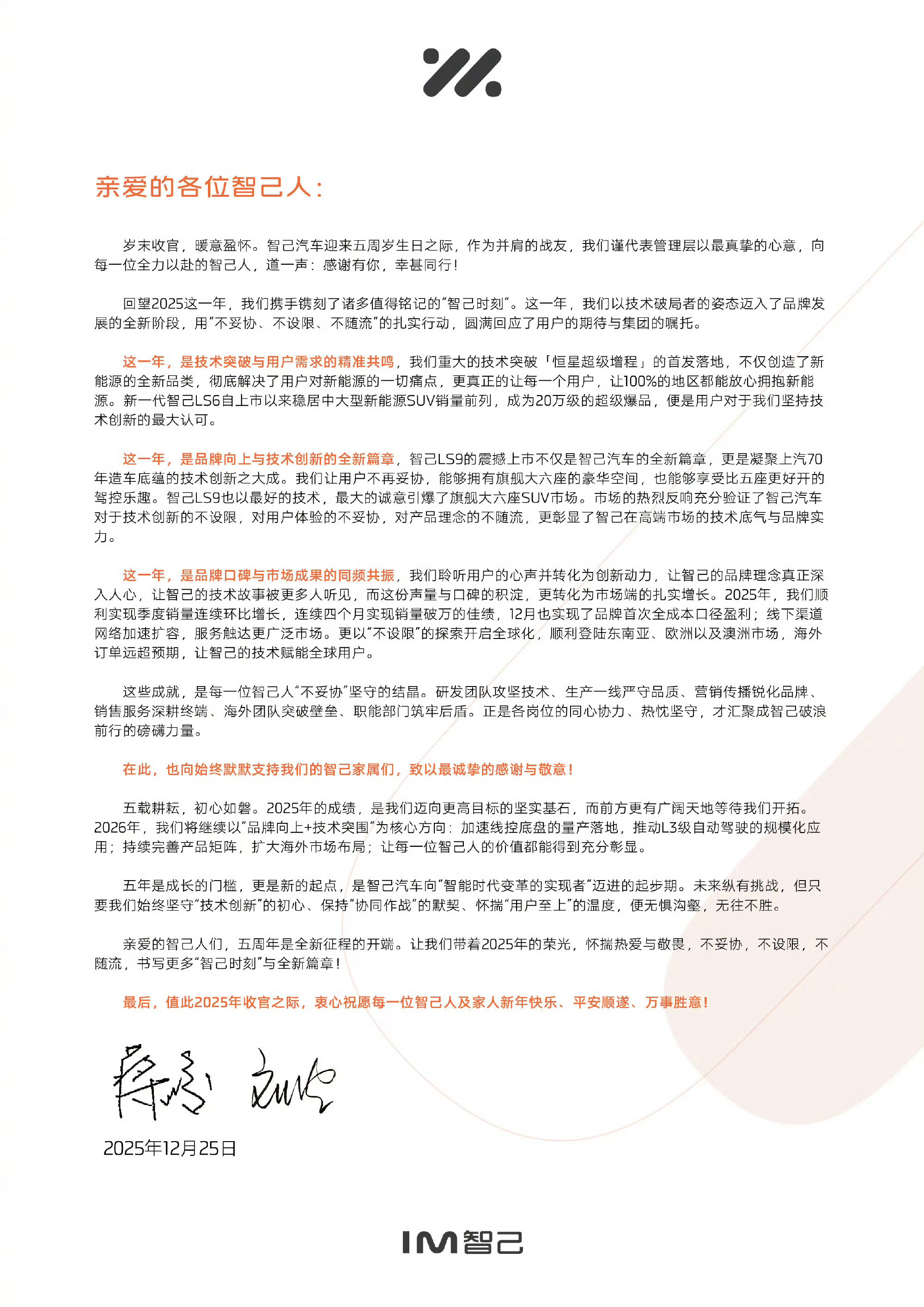 智己五周年实现单月盈利 简单理解就是把造车、研发、卖车等所有成本都算上之后,智己单月真正开始赚钱了。这对一个新品牌来说,绝对是向前迈了一大步。销量表现好,背后离不开技术和产品助力。智己新推出的恒星超级增程技术,解决了电动车在北方冬天怕冷、续航短的痛点,成了很多北方用户的首选。同时,新一代智己LS6和LS9两款车,用扎实的技术和实在的配置,成为20万级、30万级新能源市场热门首选。现在问题来了,智己未来是继续拼技术、做品牌,还是开拓新市场?一起来评论区聊聊吧!大v聊车