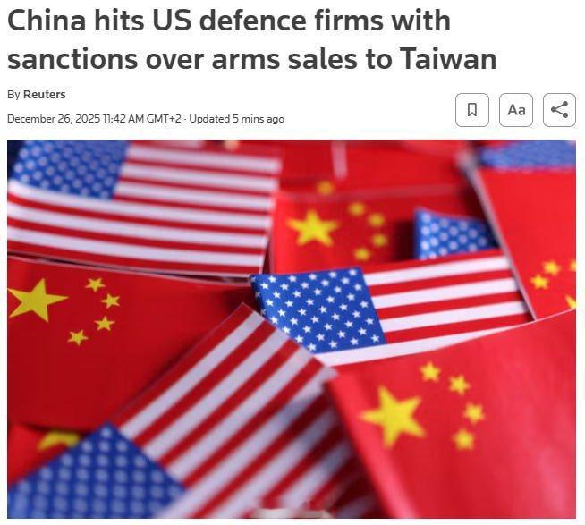 中国对20家美国军火公司实施制裁,原因是这些公司参与了对台军售,加剧了台海地区的紧张局势。 来源:路透社