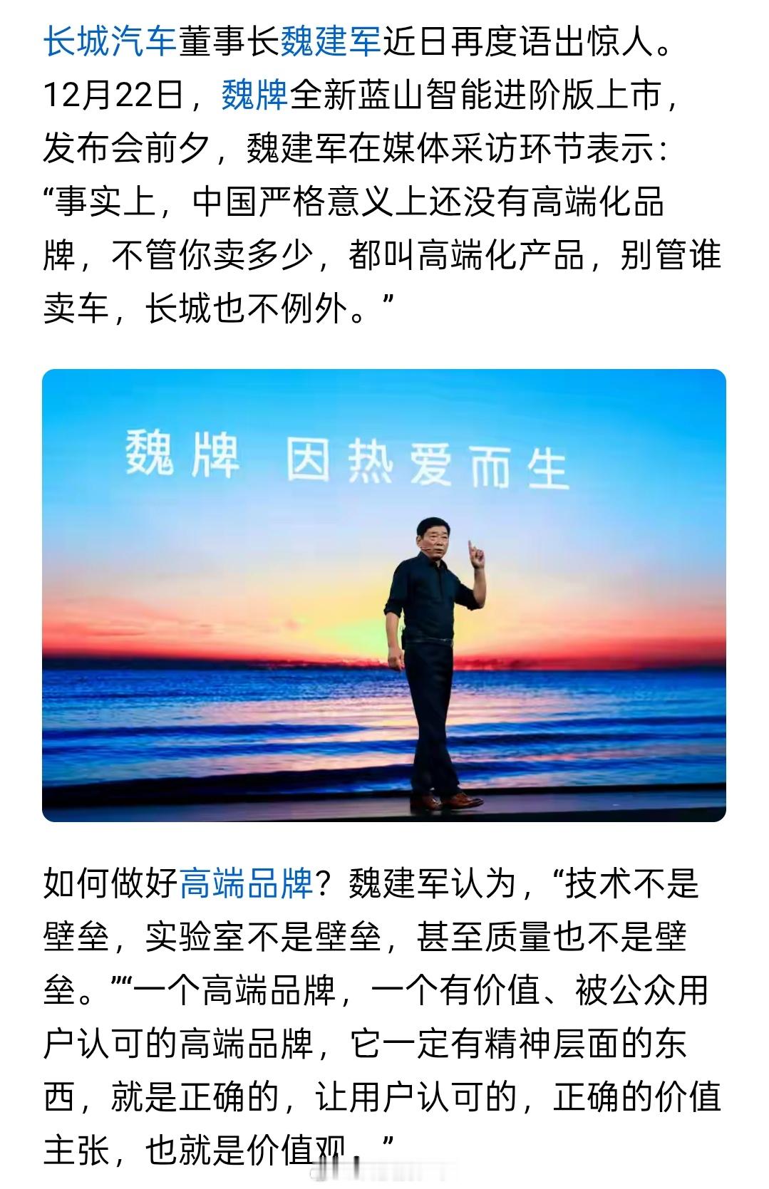 奇瑞眼中的国产高端品牌:理想、小鹏、仰望、岚图、红旗、阿维塔、极氪、蔚来、捷途长城魏建军:中国还没有严格意义上的高端品牌
