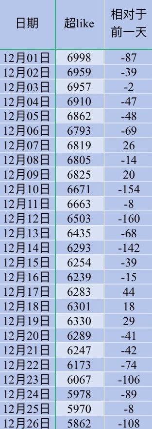 吴宣仪wxy吴宣仪辛凌 昨天的超喜欢下降得稍微有一丢丢多了 昨天的发帖和今天的超喜欢底数也下降了一丢丢
