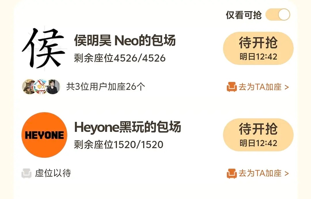 侯明昊虽然逍遥二番,自己包了5000座云包场,品牌和亲友包了4040