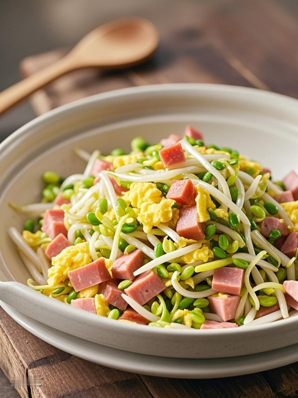 今日美食必须拿出来晒晒!我做了豆芽火腿炒蛋和肉末金针菇炒鸡蛋。 豆芽火腿炒蛋,食材常见做法简单。先炒蓬松的鸡蛋盛出,再炒香蒜末,加入火腿肠条、青椒丝、豆芽大火翻炒,最后把鸡蛋倒回调味,清爽不腻,豆芽易消化,鸡蛋蛋白优质,青椒补充维C。 肉末金针菇炒鸡蛋也绝了,5种食材10分钟出锅。先炒嫩鸡蛋,再炒香肉末蒜末,接着炒软金针菇,倒入鸡蛋和酱汁,汤汁浓稠裹住食材,拌米饭香到舔碗,金针菇有膳食纤维,鸡蛋是优质蛋白。这俩菜都超赞! 我还搭配了一碗清爽的蔬菜汤,简单地用小白菜、香菇和豆腐煮成,那鲜美的味道,就像给味蕾做了一场舒缓的按摩。喝上一口,从喉咙暖到胃里,整个人都舒坦了。 一顿饭吃下来,肚子圆滚滚的,幸福感爆棚。这两道炒菜加上蔬菜汤,营养均衡又美味。而且啊,它们的做法都不难,厨房新手也能轻松驾驭。 宝子们,别光看着我晒美食流口水啦,赶紧动手试试,相信你们做出来也会被自己的厨艺惊艳到!