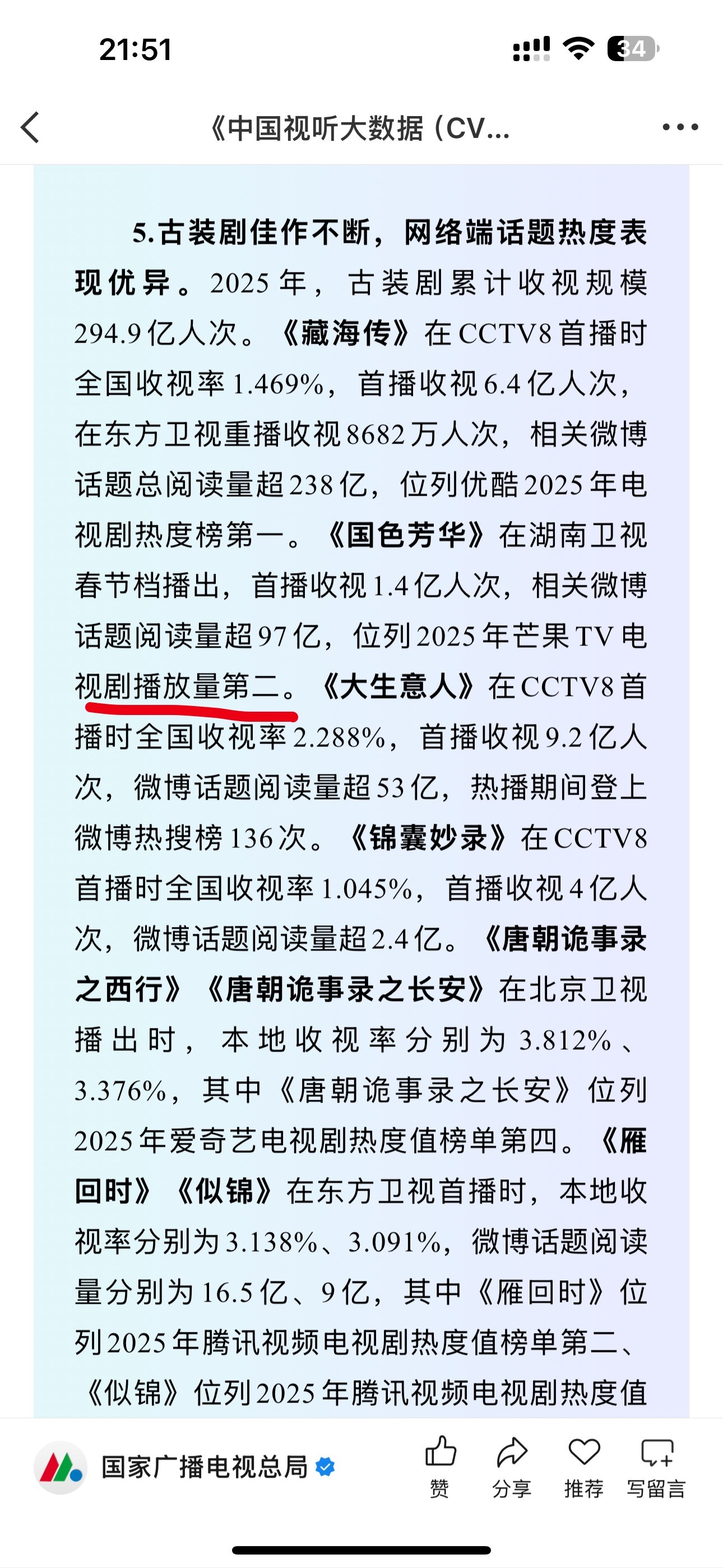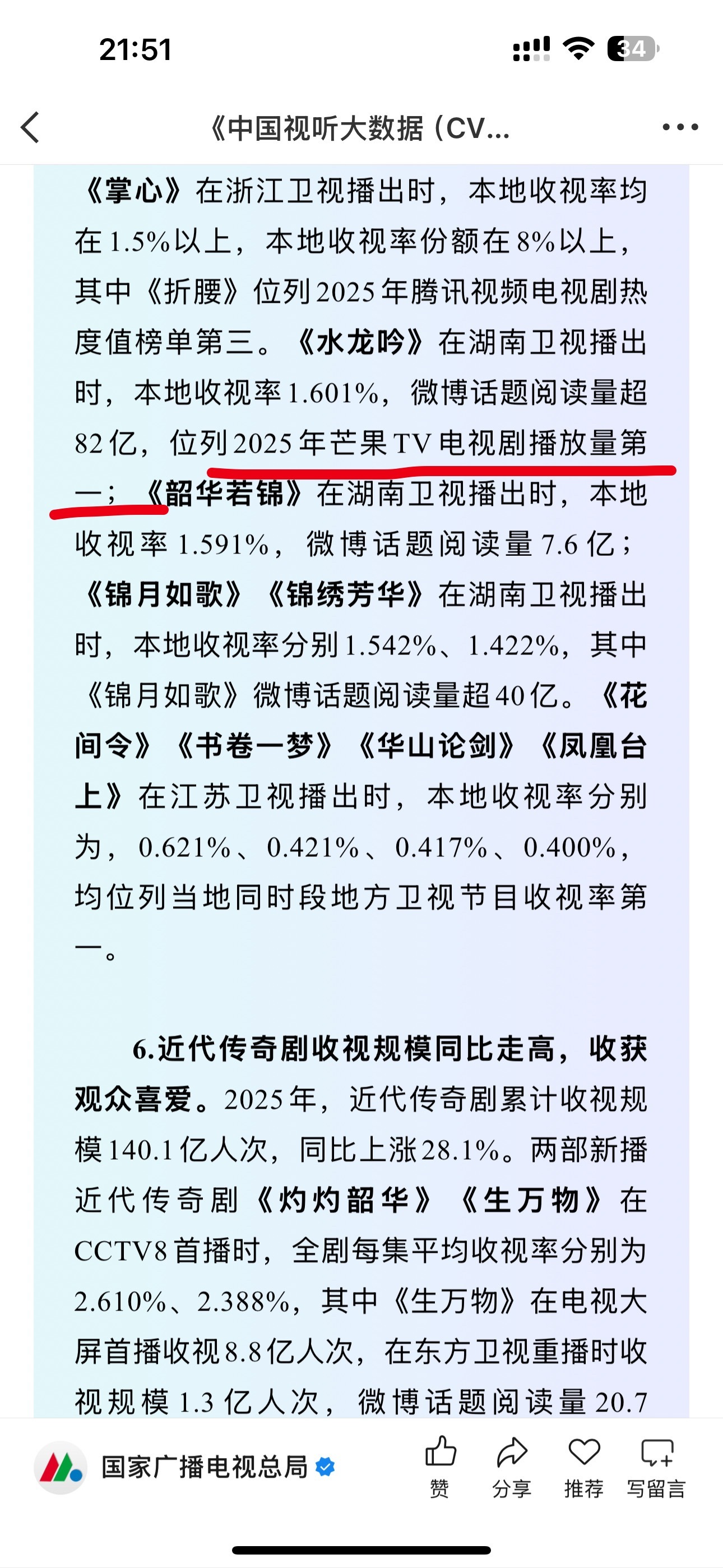 这真的是广电那个文章里写的水龙吟和国色芳华? (真的 补充了原文)