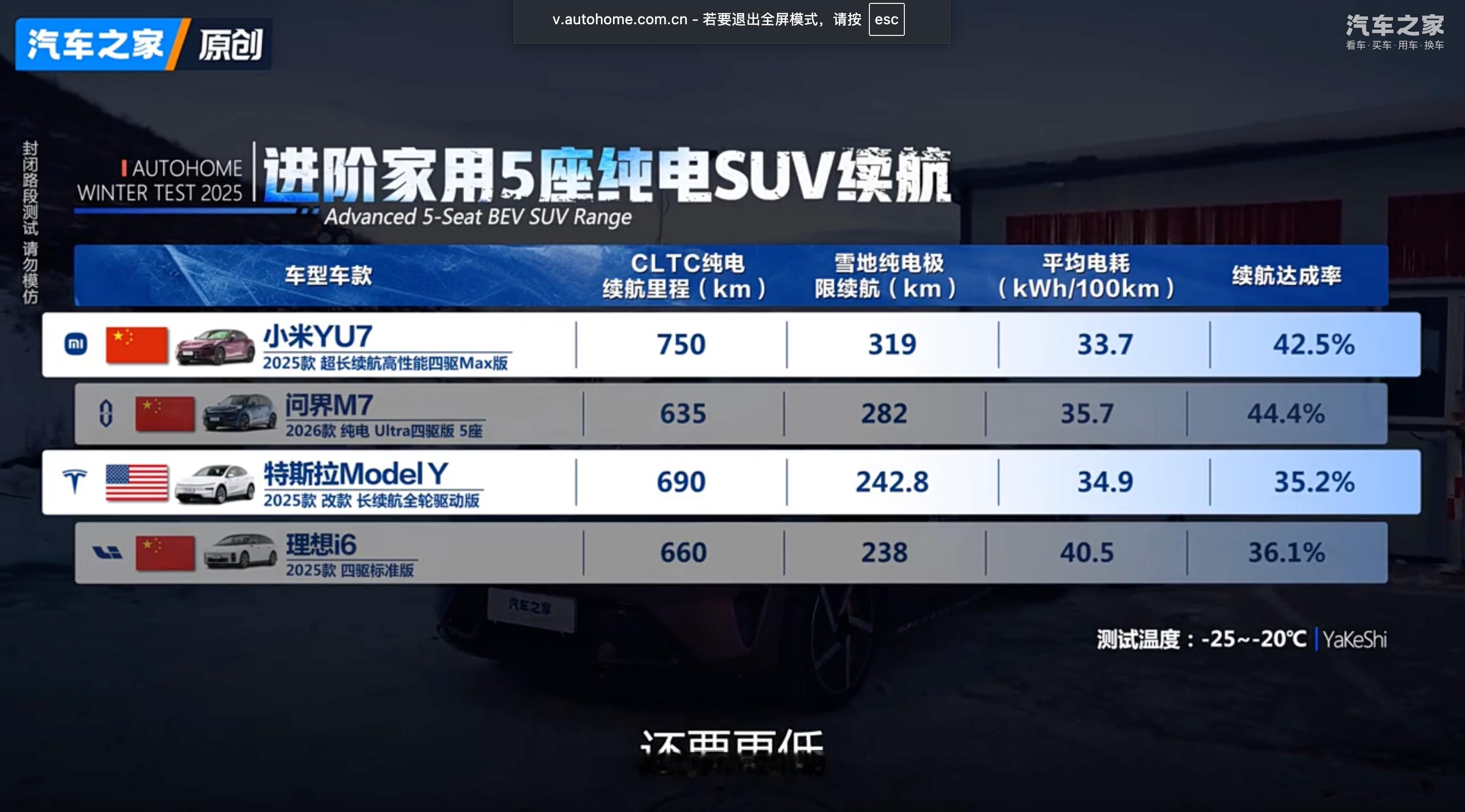 汽车之家冬测成绩出来了,小米YU7组内续航、能耗、充电效率均第一!加速全场第一!小米YU7冬季实测五项第一冬季对新能源车来说本身就不友好,但是小米YU7在零下20多度的极端环境里,续航还能跑319公里,平均充电功率102.5kW,在北方的小伙伴真的没必要担心了雷军回应小米YU7冬测成绩 小米在创建之初就建立了整车能量流模型,用于分析驱动、热管理、阻力等各部分能耗从而针对性优化,所以才有了今天这样的优势,这是很多车企没有的东西我记得去年是SU7各种第一,今年是YU7各种第一,能和特斯拉比三电技术的恐怕只有小米了吧?