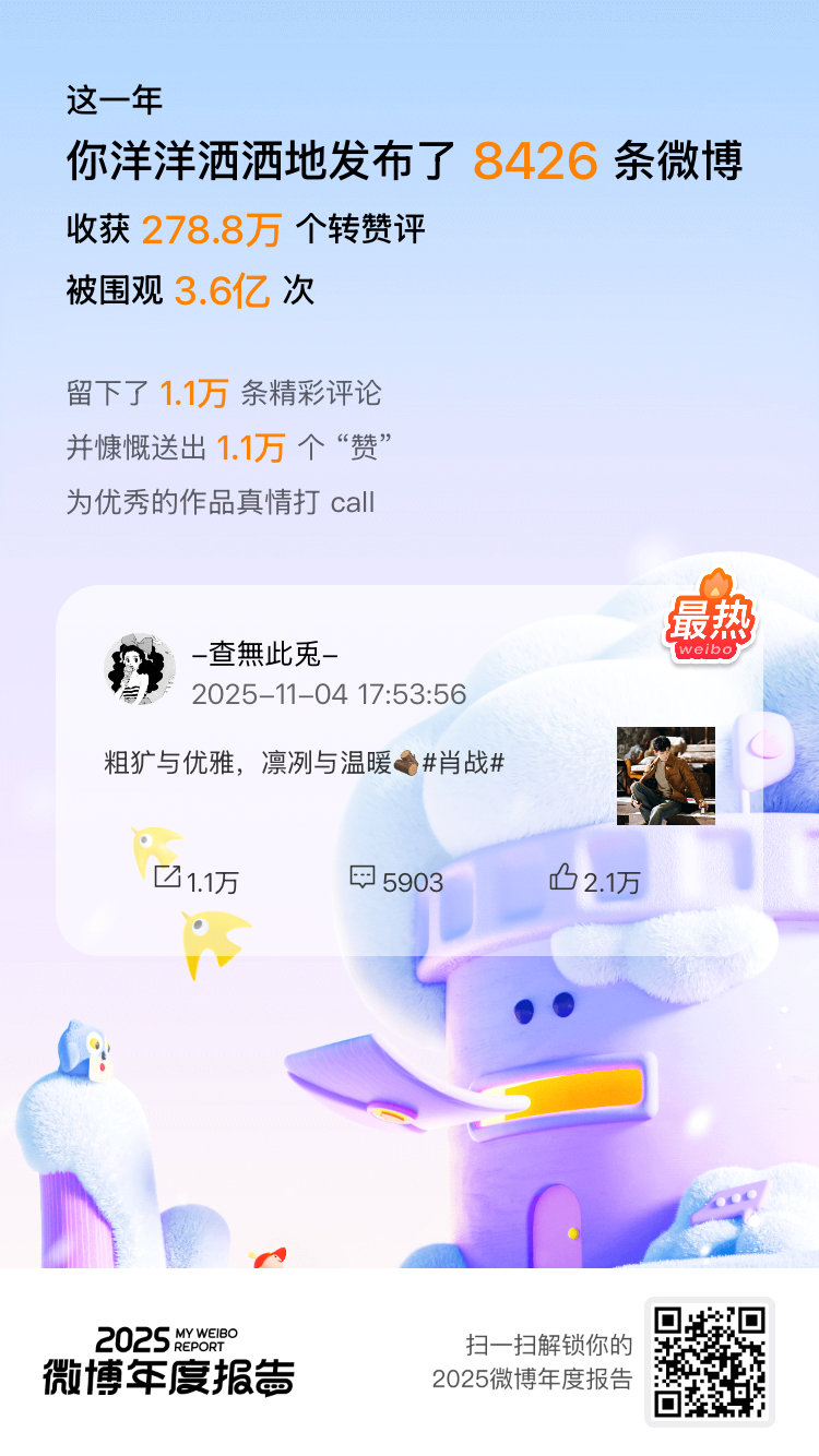 说出来我自己都不信!2025我居然有365天都在微博“营业”!比上班打卡还积极是咋回事!你的微博出勤率是多少?速来一较高下吧>>