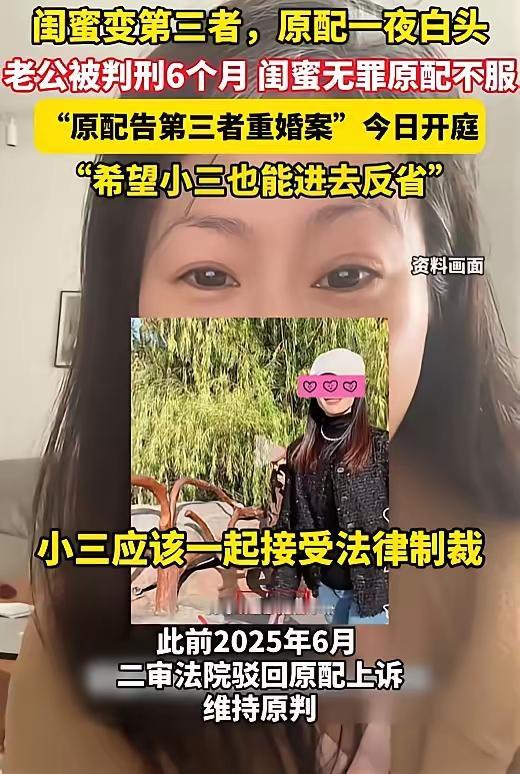 “防火防盗防闺蜜!”陕西一女子在自家车里,发现了一份打胎资料,竟然是她闺蜜的,她起初没在意,还主动安慰闺蜜,不料,却遭到闺蜜背叛,这个打掉的孩子居然是她老公的,但是为了多年的感情,她劝闺蜜不要破坏她的家庭,但是闺蜜直接拉黑了女子,女子将2人告上法庭,她坦言:我被闺蜜和枕边人双重背叛,一夜白头。 这位家住陕西安康的女子怎么也想不到,自己掏心掏肺对待的两个人,会联手给了她最狠的一刀。她和老公相伴二十年,从青涩的年纪走到中年,一起打拼买了房、养大儿子,本以为日子会就这么安稳过下去;和闺蜜也是认识十来年的交情,平时逛街吃饭、吐槽心事,她总把对方当成亲姐妹,家里的事从不避讳,连老公的喜好、家里的存款,闺蜜都一清二楚。 发现打胎资料那天,她刚开车接闺蜜看完病,资料从闺蜜的包里滑落到脚垫上,她捡起来还心疼地说“好好养身体,别想太多”,闺蜜当时支支吾吾的样子,她只当是对方心情不好,完全没往深处想。直到后来她在老公的手机里,看到两人暧昧的聊天记录,还有转账给闺蜜的记录,时间正好和打胎时间对上,她拿着资料去质问,老公才吞吞吐吐承认,那个孩子是他的。 她脑子一片空白,第一反应不是恨,而是想保住这个家。她私下找闺蜜谈,红着眼眶求对方“我们这么多年的情分,你别毁了我的家”,可闺蜜只是冷冷地说“感情的事勉强不来”,转头就把她的微信、电话全拉黑了。更让她崩溃的是,老公不仅没有愧疚,还索性搬出去和闺蜜住,甚至对外以夫妻相称,连亲生儿子都被老公哄着,喊闺蜜“妈妈”。 短短几个月,这个原本幸福的女人像是老了二十岁,头发大把大把地变白,夜里躺在床上睁着眼睛到天亮,一闭眼就是老公和闺蜜在一起的画面。她实在咽不下这口气,把两人告上了法庭,指控他们构成重婚罪,希望法律能给她一个公道。 法院的判决下来,让她再次陷入绝望:老公因重婚罪被判六个月有期徒刑,可闺蜜却被认定无罪。她不服判决提起上诉,2025年6月,二审法院驳回了她的上诉,维持原判。面对镜头,她哭着说“我就是希望她也能进去反省一下,凭什么她毁了我的家,却不用承担任何责任?” 这事儿在网上传开后,网友们吵翻了天。有人说闺蜜的行为虽然缺德,但从法律层面来说,确实很难认定为重婚罪的共犯,毕竟重婚罪的定罪标准是“以夫妻名义共同生活”,主要追责的是有婚姻关系的一方;也有人觉得,法律管不了的道德问题,也该受到舆论的谴责,闺蜜明知对方有家庭还插足,这种背叛友情又破坏婚姻的行为,实在太让人不齿。 其实在现实里,这样的事并不是个例。我身边就有个朋友,发现丈夫和自己的发小搞在一起,她又气又痛,最后不仅和两人断了关系,还因为长期抑郁患上了失眠。这些案例都在提醒我们,婚姻里的忠诚是底线,友情里的真诚也是根基,一旦有人打破了这些,伤害的不仅是一段关系,更是人心。 法律能制裁违法的行为,却很难衡量人心的善恶。这位陕西女子的遭遇,让我们看到了婚姻和友情双重背叛的残酷,也让我们思考,面对这种道德上的过错,除了法律,我们还能靠什么去约束? 看完这个故事,你觉得闺蜜的行为该不该受到更严厉的惩戒?面对婚姻和友情的双重背叛,当事人又该如何走出伤痛?