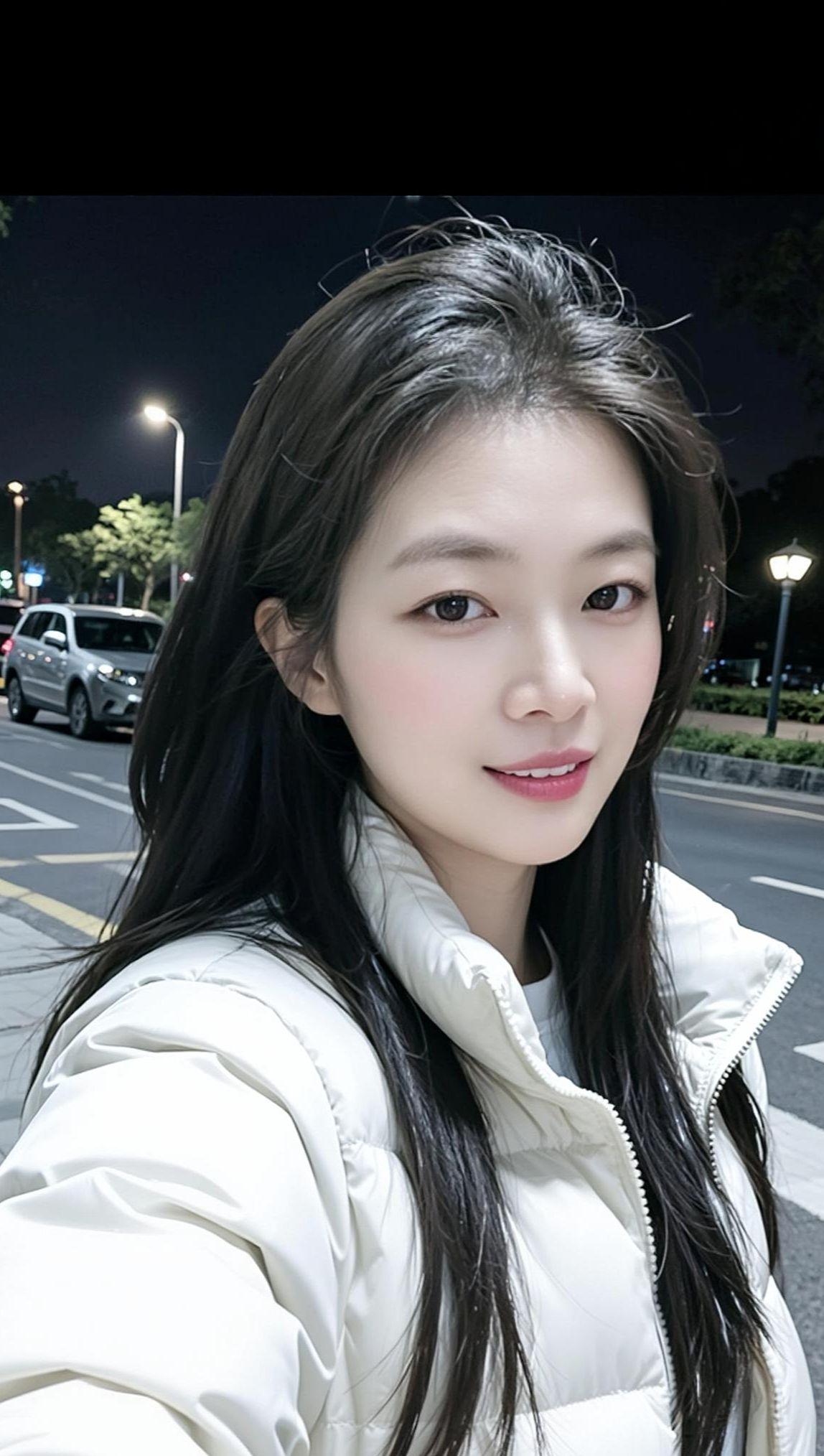 AI夜街自拍风甜系女孩甜美优雅写真可爱甜妹清新自然抖音ai创作