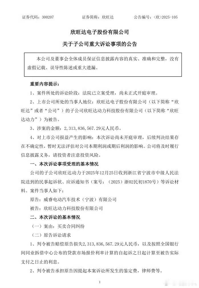 吉利状告欣旺达索赔23.14亿元新能源供应链又爆雷了!极氪关联公司威睿把欣旺达告了,索赔23.14亿,据说是因为电芯质量缺陷。2021-2023年欣旺达给极氪001 WE86供电芯,去年底车主集中反馈充电变慢、容量衰减,极氪免费给车主换了宁德时代的电池,单台成本15万,近万辆车直接亏超10亿,然后据说和欣旺达协商了半年,最后谈崩起诉了。23亿索赔快赶上欣旺达近两年净利润总和(25.44亿)了,它动力电池业务本就亏,2024年亏18.7亿、毛利率才9.77%,比宁德时代24%低多了,这波要是败诉,这两年直接白干,估计现金流也得崩!其实这可能就是高速扩产轻品控的锅,欣旺达丢了吉利系的核心订单而且声誉受损,极氪现在加速换供宁德时代了……无论是什么行业,品质一定是未来供应链的核心,如果扩产求量不求质早晚要买单……大v聊车新能源汽车汽车汽车资讯呵叔分析汽车资讯供应链