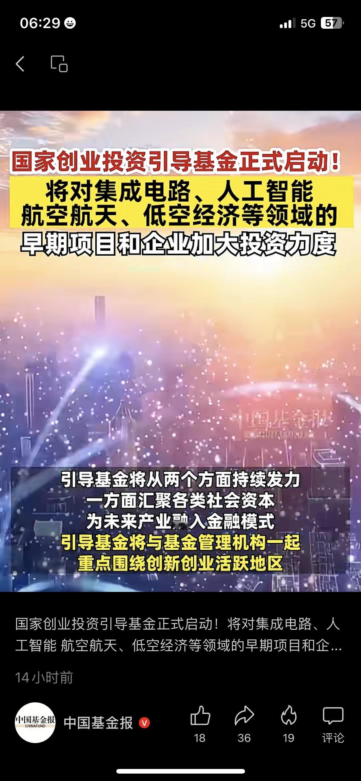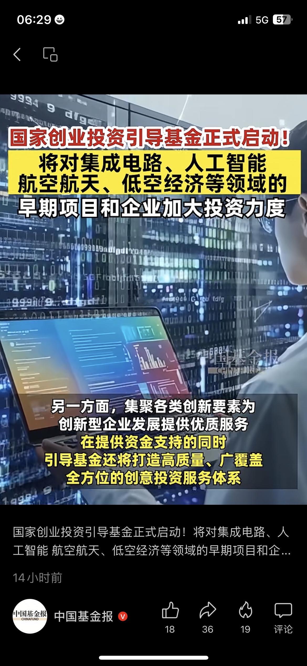 国家创投基金启动,重点投集成电路人工智能等领域创投行业动态 下午和做科创孵化的学长聊天,他刚刷到新闻,手里的咖啡杯都没放下就开始记录。 国家创业投资引导基金正式启动,将加大对集成电路、人工智能等领域的投资,瞄准早期项目。 科技园的招商经理路过,凑过来看了眼手机,说:这对初创硬科技企业来说,就是及时雨。 基金还会带动民间资本一起入局,科创领域的资金活水会更足。 你觉得这只基金能给硬科技初创企业带来哪些实际帮助?哪些细分领域会最先受益?国家创投基金