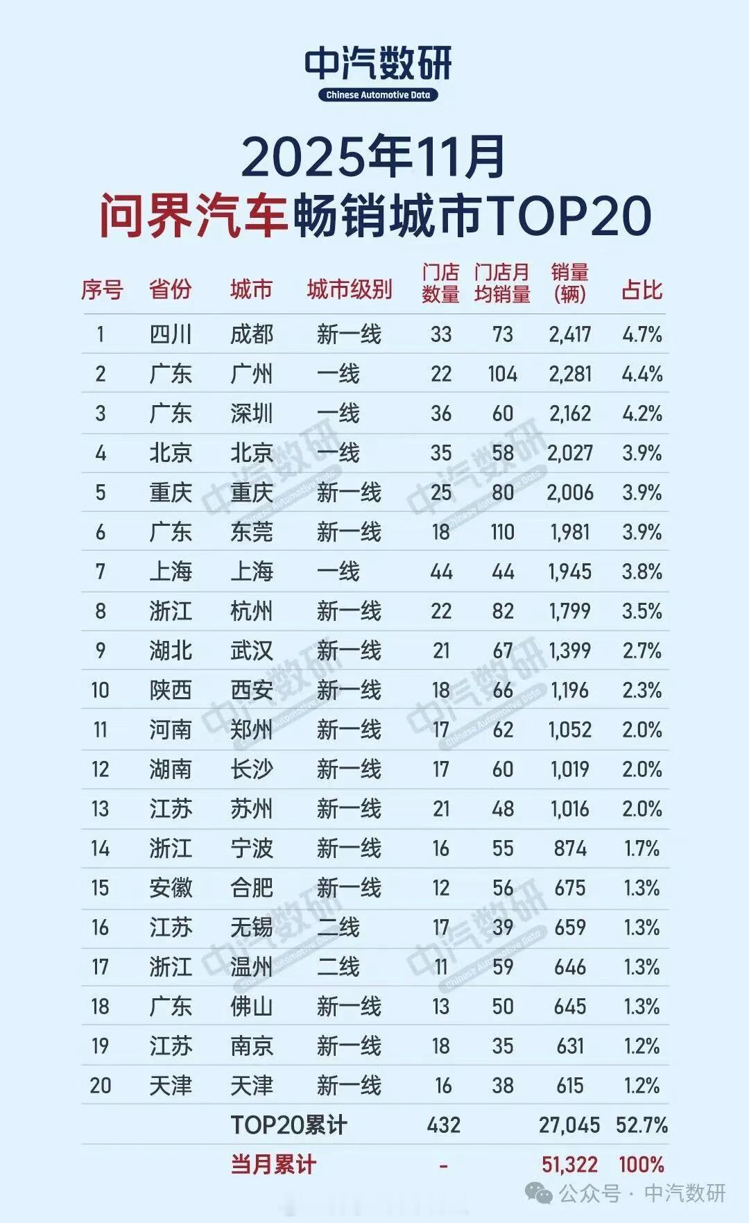 中汽数研11月份两个品牌销售最好的top20城市。重合度还是很高,感觉并没有直接竞争,主要是大家覆盖的用户群并不冲突。汽场全开
