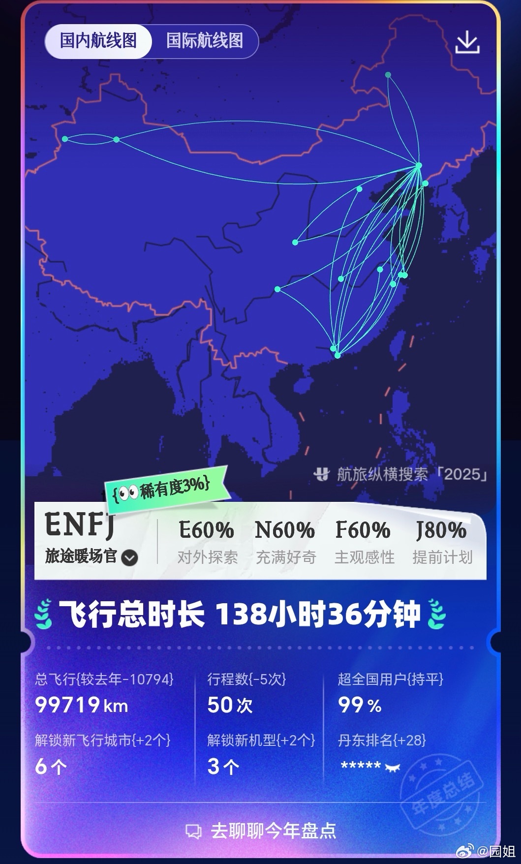 #航旅纵横年度报告#今年一共飞了50次,比去年少了三次,今年事太多,有些活动安排工作室小伙伴去了,所以相对出差少了好多,留下更多时间陪孩子和家人。