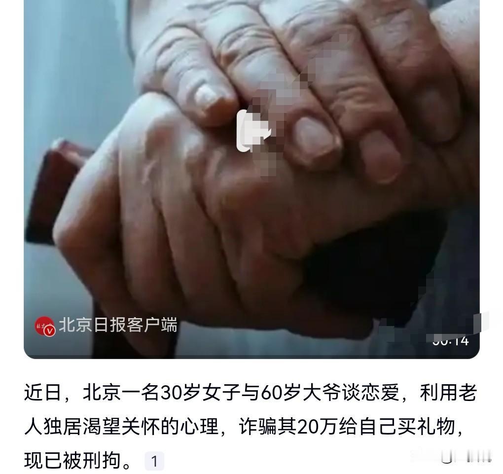 抓的好,抓的妙啊,一定要严惩啊。 30岁女子恋爱骗60岁大爷20万被刑拘。 竟然骗60岁老人的钱,20万,真是太缺德了。 一定要严惩。 绝对不能让这些骗感情骗钱的人逍遥法外。