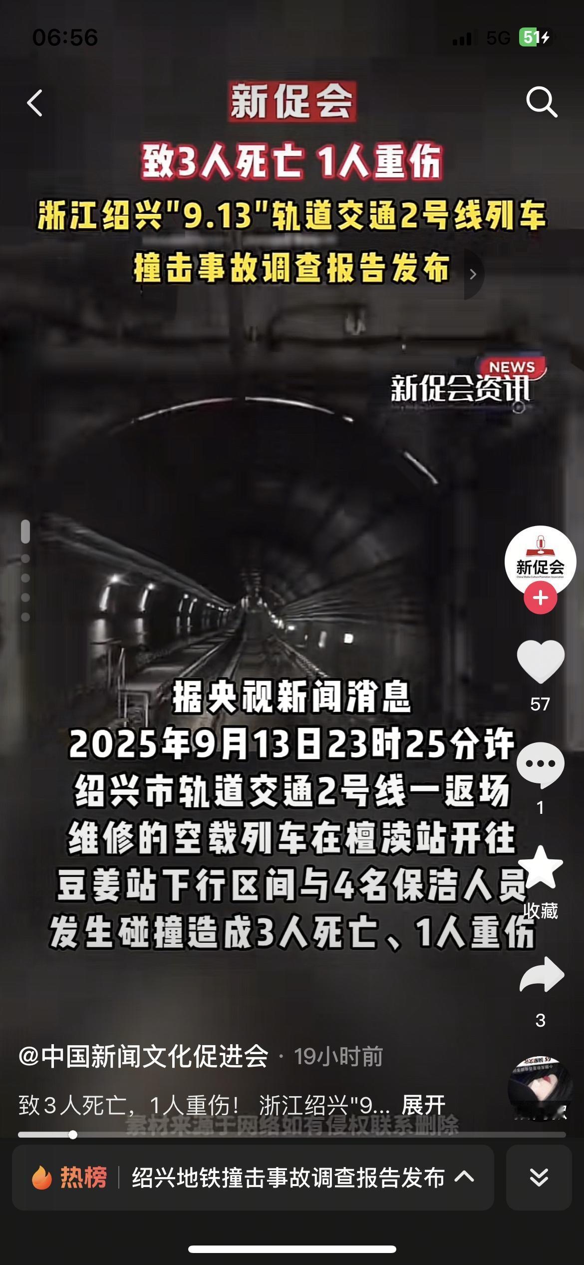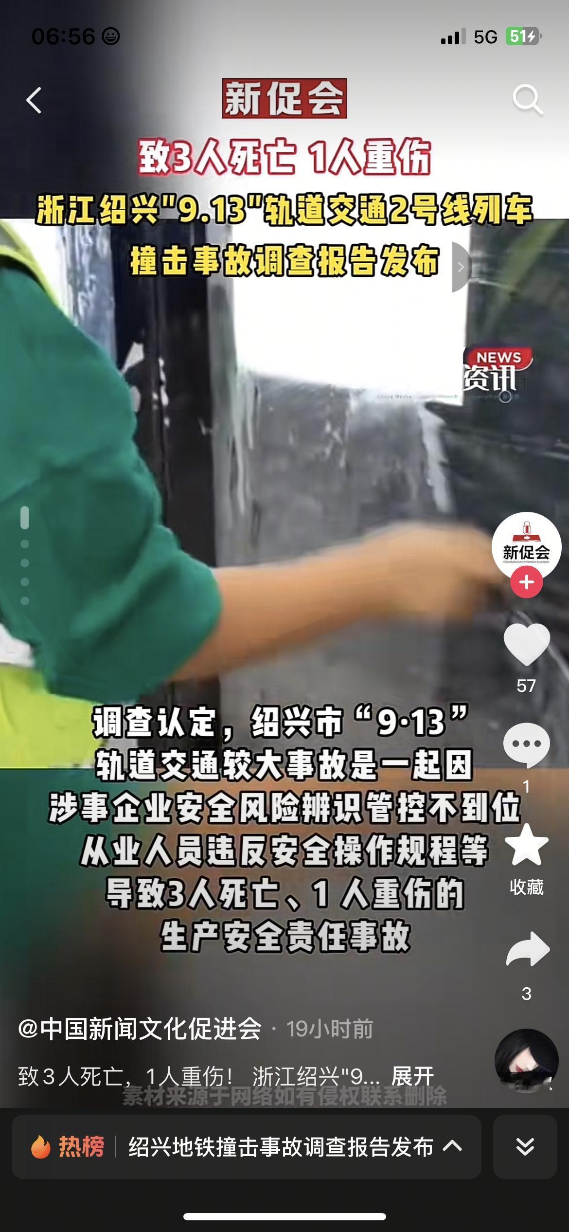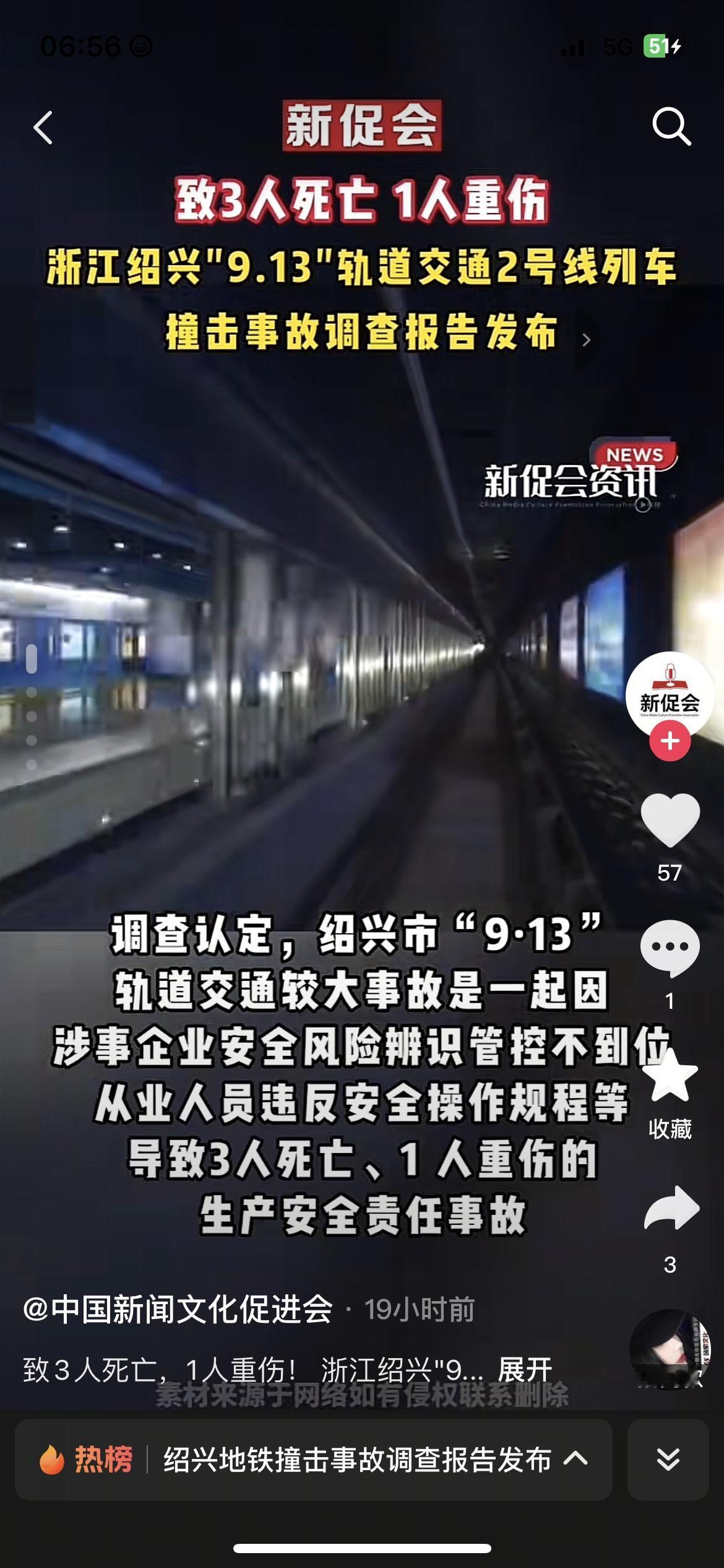 绍兴地铁事故致3死1伤,调查指向企业安全漏洞安全事故警示 上班路上刷到新闻,地铁口等车的乘客看到后,纷纷停下脚步小声议论。 绍兴9·13地铁撞击事故被认定为生产安全责任事故,涉事企业安全管控不到位是主因。 便利店店员整理报纸时看到报道,皱着眉说:轨道交通安全容不得半点马虎。 违规操作加管控漏洞,最终酿成了让人痛心的悲剧。 你觉得轨道交通企业该如何筑牢安全防线?这类事故该如何避免再次发生?