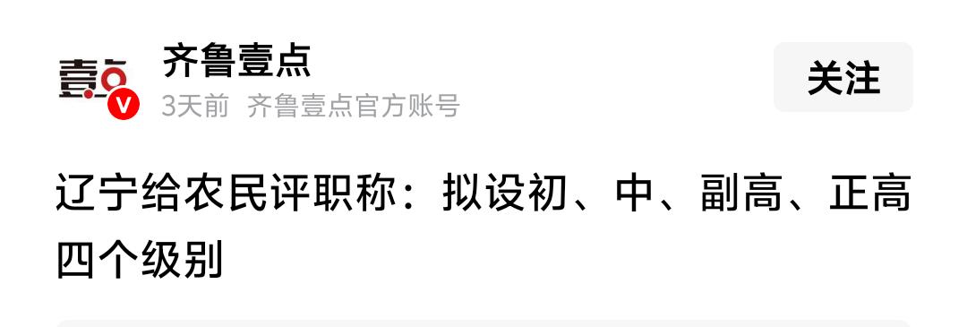给农民评职称,不能说是坏事;毕竟教授有高级的,农民也应该有高级的。 但这事吧,还是有些疑问: 一是农民评高之后,能多收三五斗不? 二是谁来给农民评职称?城里的专家吗? 三是评职称要不要交钱?还是摆数据写论文? 关键是,他们评了职称,有奖励吗?