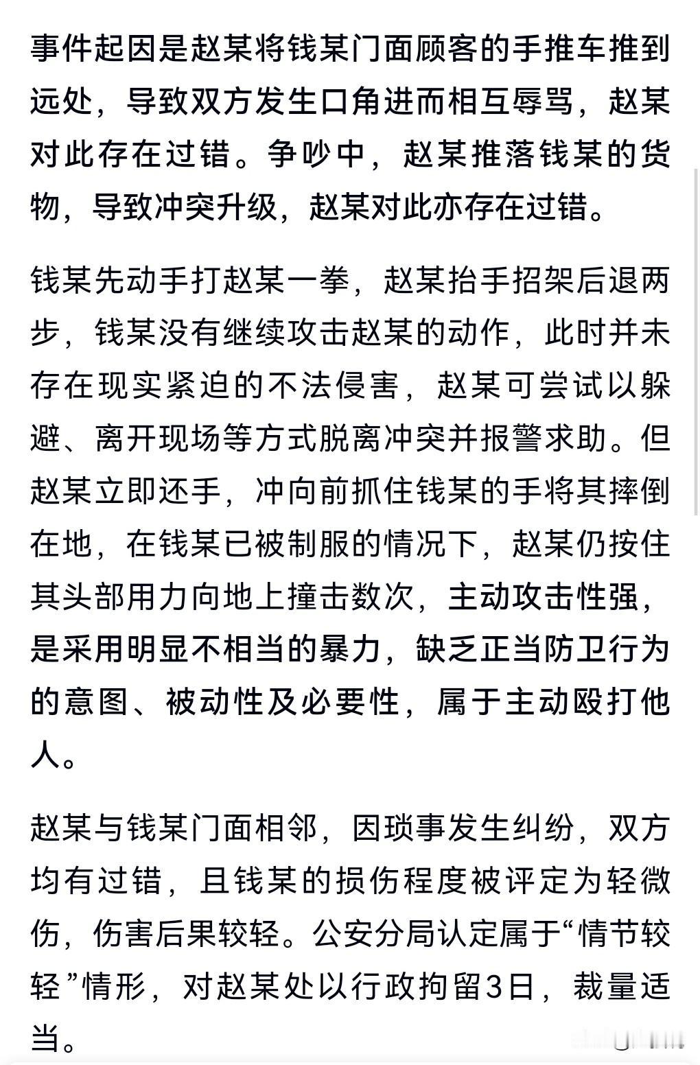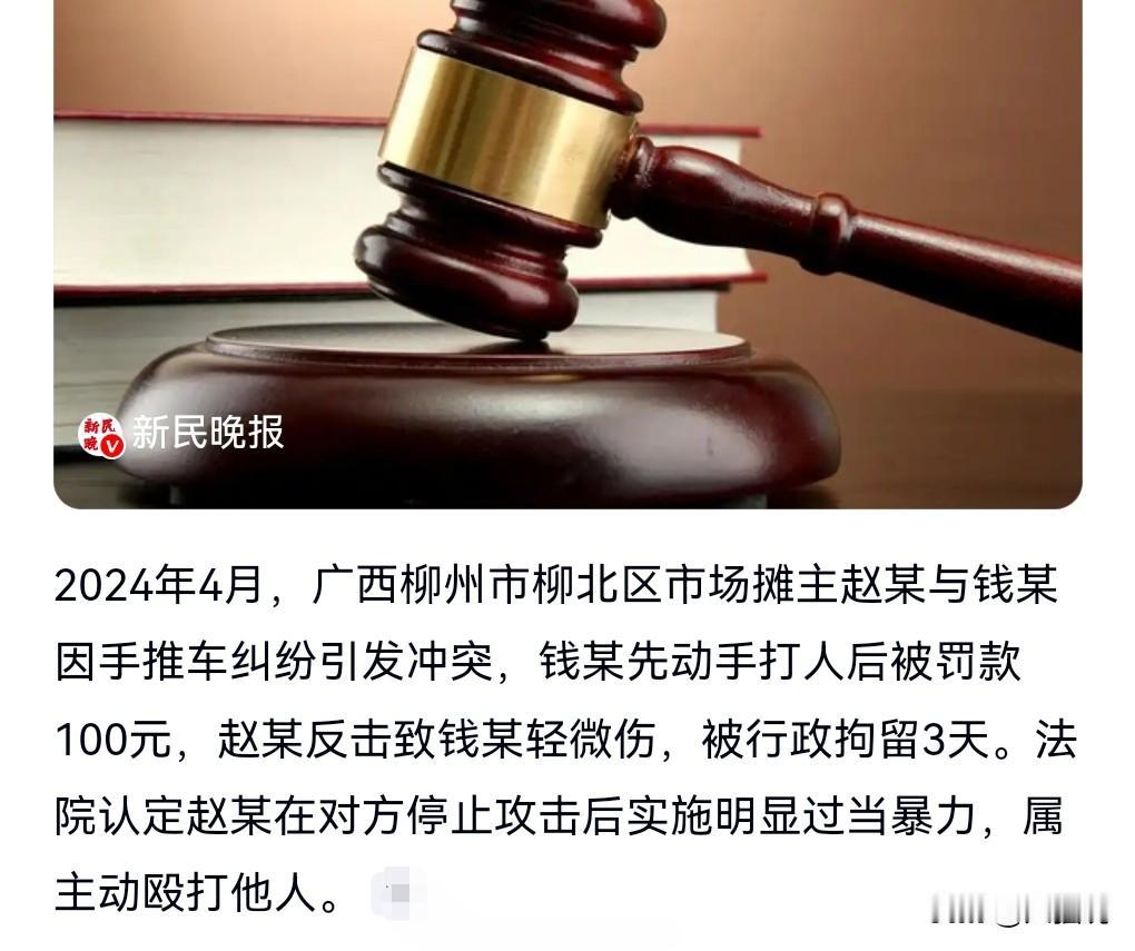 这真是敲响了警钟啊。 千万不要防卫过当。 两男子发生纠纷。 先动手的罚100元,但是先动手的后来被打成轻微伤了。 还手的防卫过当了,所以被拘三天。 所以说这个正当防卫和防卫过当一定要非常的了解,要不然很容易吃法律上的亏。