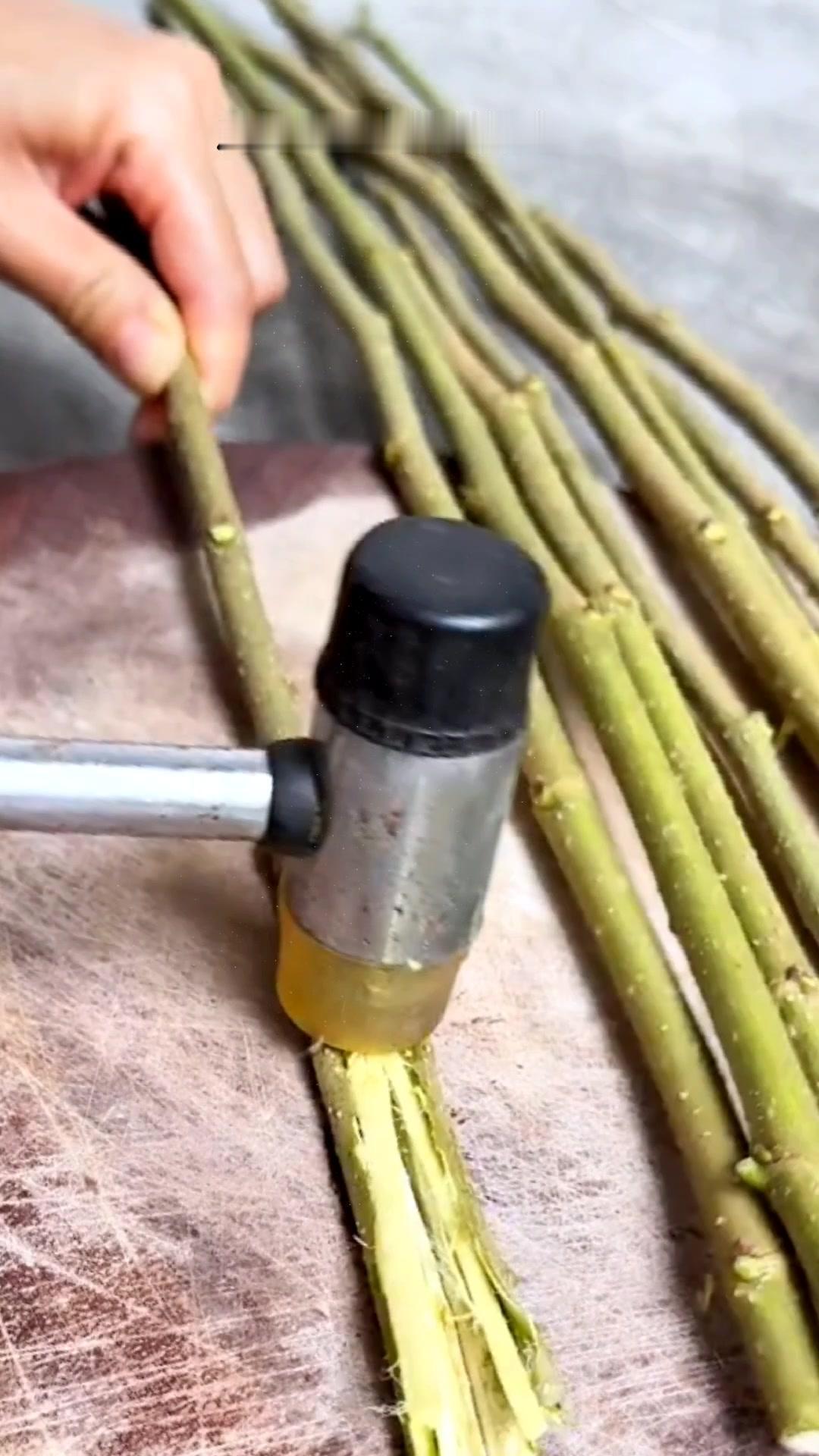 🌿桑枝处理原来这么简单!一直以为要很复杂的步骤,没想到采回家敲打、剪小段、晒干就行,操作起来完全不费劲,像我这种手残党也能轻松搞定~ 把桑枝条采回家,第一步用锤子用力敲打,这样能让枝条更容易吸收后续处理的水分,也方便剪成小段。之后把敲打后的枝条剪成合适的长度,接着放到太阳底下充分晒干,晒干后的桑枝就可以好好储存起来了。 整个过程不复杂,大概就是这样三个简单步骤,处理好的桑枝平时还能当药材,感觉自己又解锁了一个农村小知识~