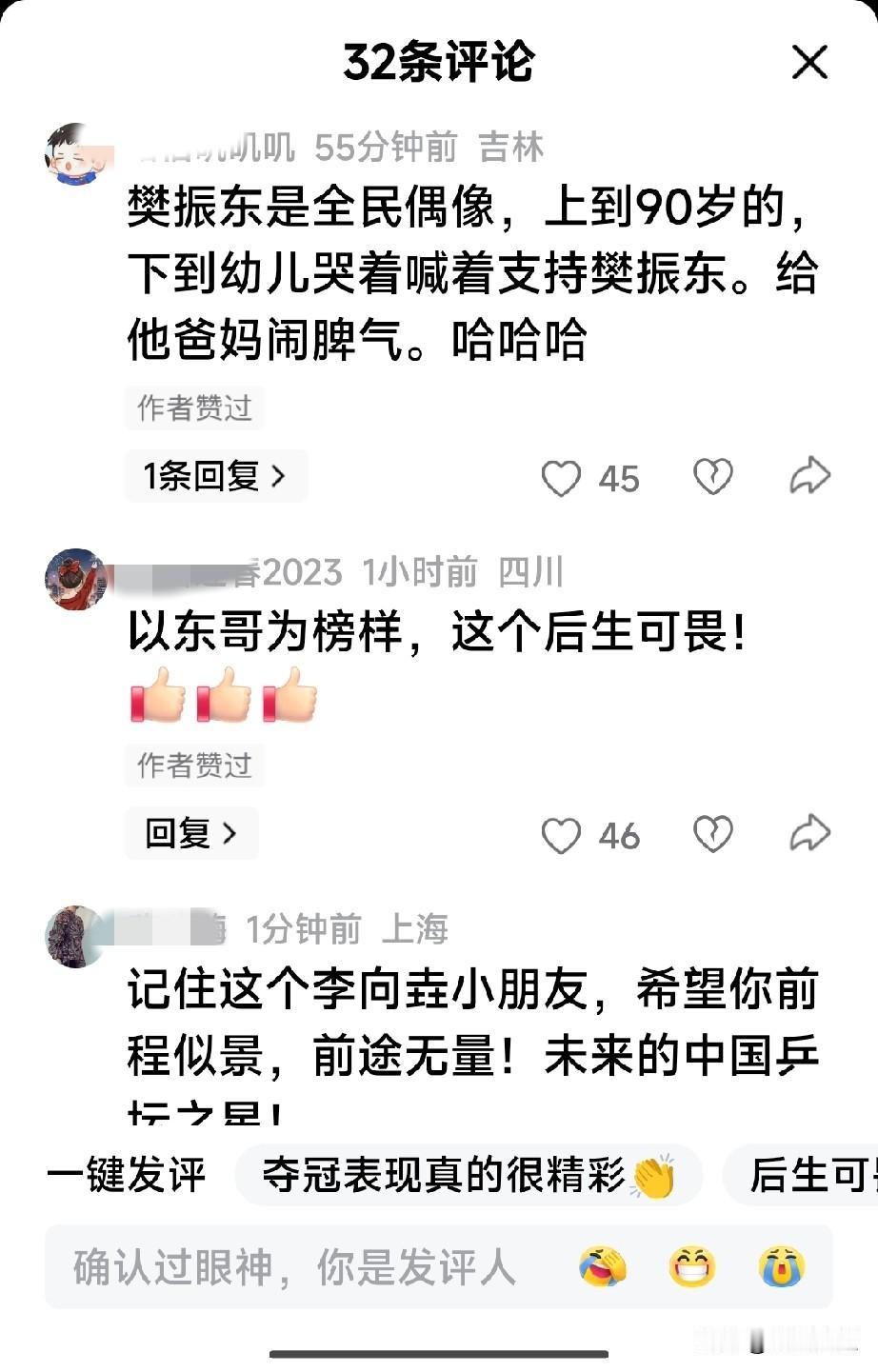 乒超联赛小孩哥获胜后, 比起了樊振东的手势! 不得不说, 东哥确实是很多打球人的偶像, 樊振东技术早已经是顶级了, 今年有了新突破, 在男人眼里, 就是技术痴! 网友说: 以东哥为榜样, 前程似锦!