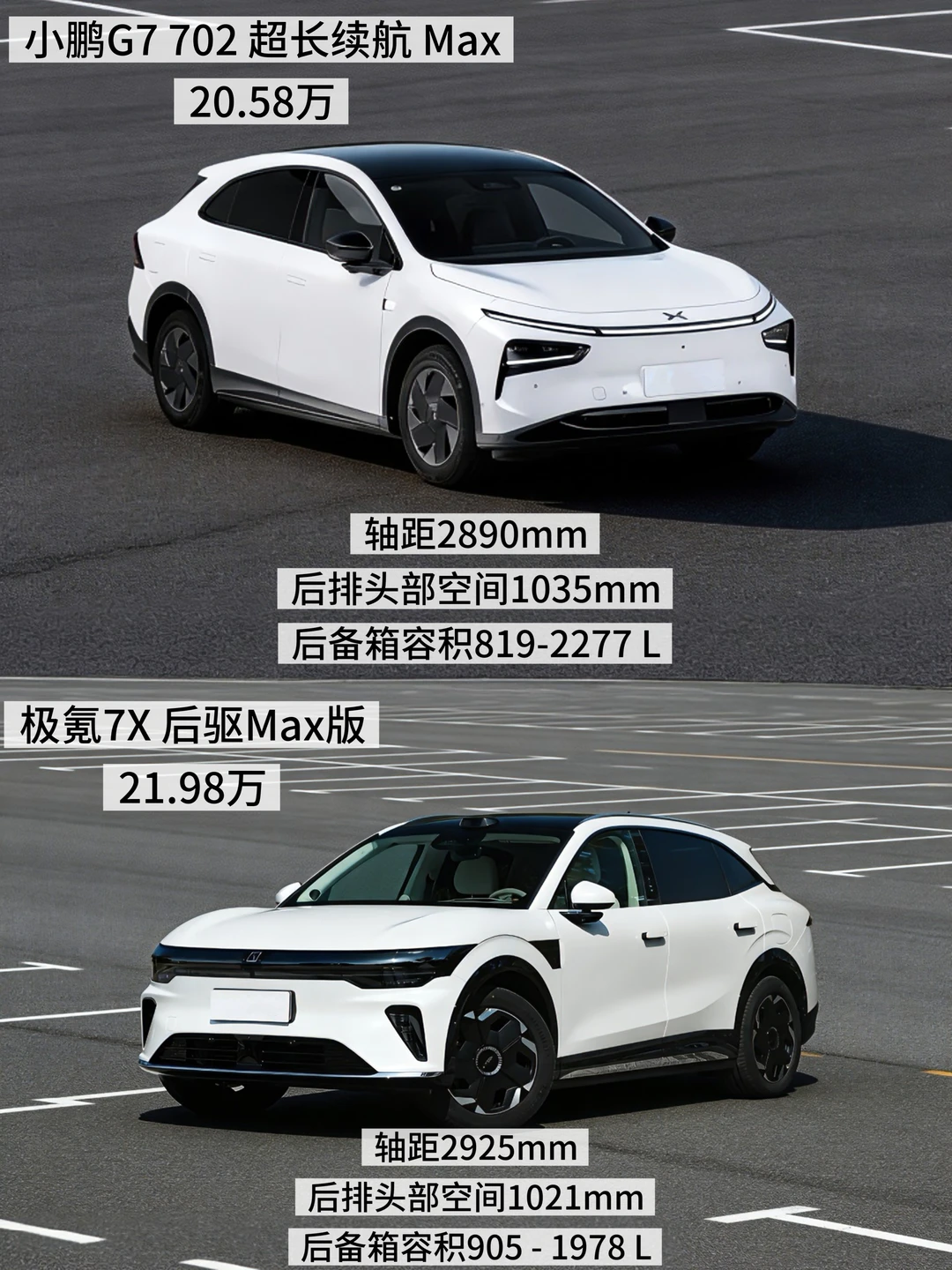 🔜续航上面,两车都还好,小鹏G7是702km超长续航,冬天开空调也不虚。极氪7X是620km续航略逊一筹,但日常通勤够了。