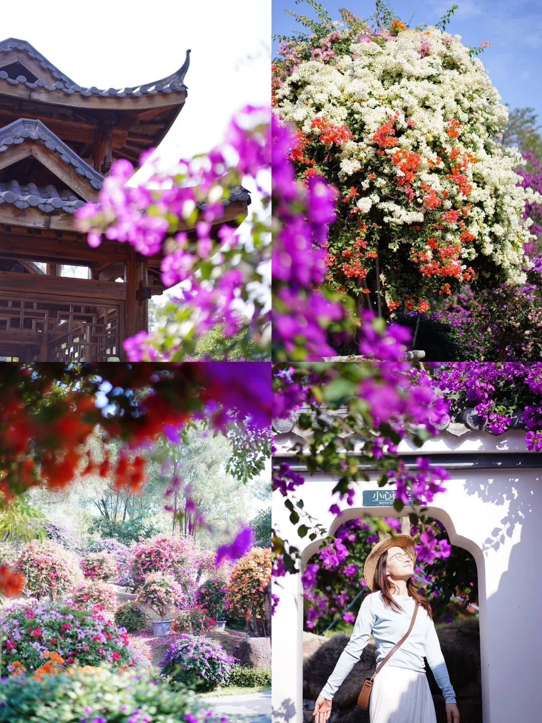 ✅霓裳园🌸:最让我惊艳的是,这里有成百上千棵五彩斑斓的三角梅!正值花期,中式美学的园林设计与梅花相呼应,拍照绝绝子!