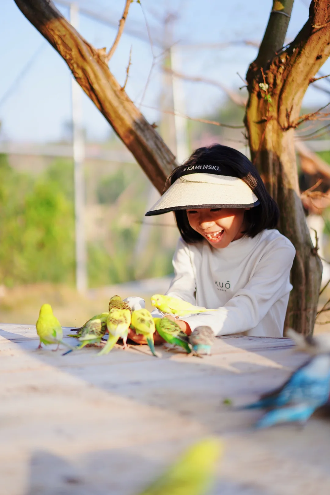 霓裳园赏三角梅➡️巴拿马花园赏🌸异木棉➡️松鼠乐园喂🐿️/🐰/🐹➡️鹦鹉园喂🦜➡️无动力乐园➡️孔雀园🦚/鹿鸣半岛🦌➡️坐🚂返回起点