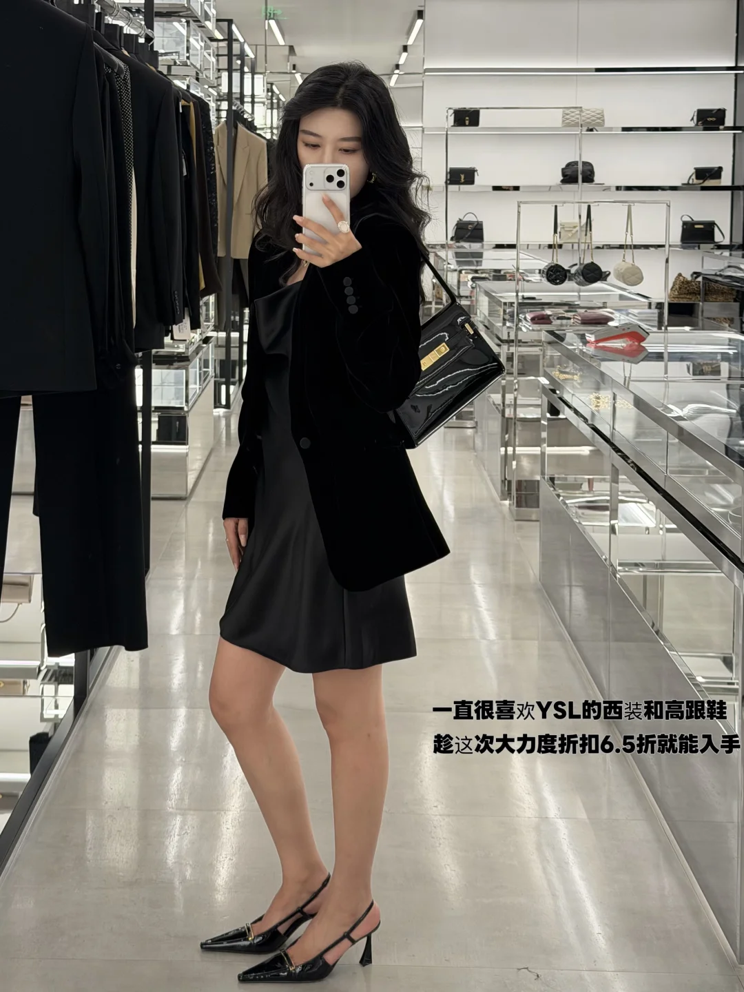 • Saint Laurent:低至三折再享折上折,一气呵成购入经典版型的丝绒西装➕缎面吊牌裙、搭配曼哈顿包与高跟鞋,一整套又美又飒完全是我的风格。