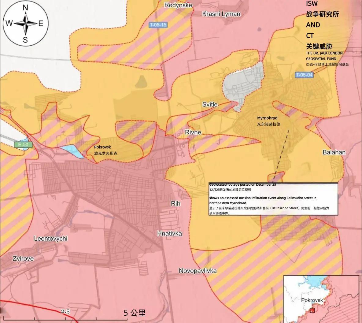 红军城战况更新:赫里希内成为双方争夺重点,俄利用雾天继续渗透 过去的一天,俄乌双方在全域共爆发258次战斗,其中波克罗夫斯克方向以63次交火成为战斗最激烈的战线。 12月24日至26日期间,波克罗夫斯克前线的战斗呈现全域扩散与重点突破并存的态势,俄军在多个方向同步发起攻势,其中赫里希内南部区域的争夺尤为激烈。12月26日发布的地理定位视频证实,俄军已在赫里希内南部展开实质性军事活动,这与此前俄方消息源声称在此区域保持阵地的表述相互印证,表明该地点已成为俄军巩固北线攻势的关键支点。 从交战范围来看,俄军的攻击覆盖波克罗夫斯克市区及周边多个战略要地:西北部朝向赫里希内方向持续施压,北部逼近罗丁斯克,东北部延伸至克拉斯尼利曼、苏赫采斯克和诺沃埃科诺米奇内一线,东部直接渗透至米尔诺赫勒德城区,南部及西南部则在列昂托维奇、科特利内、乌达赫内和莫洛杰茨科耶等区域与乌军形成拉锯。值得注意的是,俄罗斯国防部及相关军事博主均声称乌军在波克罗夫斯克和赫里希内附近发起反攻,显示该战线已进入攻防双向博弈的高强度阶段。 恶劣天气成为近期俄军调整战术的重要依托,连续多日的大雾为其渗透行动提供了天然掩护。据波克罗夫斯克方向作战的乌军特种部队军官透露,俄军正利用低能见度条件,以1至2人规模的小股分队向乌军阵地渗透,待积聚足够兵力后再发动大规模突击,此举旨在保护其特种部队人员,减少精锐力量损耗。 乌军情报军官补充报告称,俄军的渗透行动并非孤立实施,而是在FPV无人机、火炮覆盖和空袭支援的立体配合下推进。12月25日发布的地理定位视频显示,乌军已打击米尔诺赫勒德东北部被俄军占领的建筑及波克罗夫斯克西北部的俄军渗透力量,美国战争研究所认为,这些渗透任务虽未改变整体领土控制线或前线,但已对乌军防御体系形成持续牵制。此前有军事分析指出,雾天导致乌军无人机侦察效能大幅下降。 从作战序列来看,俄军在波克罗夫斯克方向投入了多支精锐部队,形成多点打击格局:第41集团军下属第35摩步旅的无人机操作员持续在西北部打击乌军阵地;第2集团军第71独立特种营在波克罗夫斯克附近执行核心作战任务;第51集团军第5摩步旅、第8集团军第57特种连分别在米尔诺赫拉德附近开展地面进攻与FPV无人机打击;第51集团军第9摩步旅无人机部队则聚焦罗丁斯克西部目标;第27摩步师第268炮兵团的炮兵部队提供全程火力支援,第41集团军第24工兵营则承担战场工程保障任务。 在装备运用方面,俄军呈现技术装备与传统火力协同的特点:FPV无人机成为战场侦察与精确打击的核心装备,广泛用于打击乌军阵地、无人机操作点及通讯设施;同时,俄军还依托无人机引导FAB制导炸弹等重型火力,对乌军隐蔽阵地实施摧毁。乌军则通过打击俄军地面补给线、重点清除渗透分队等方式进行防御,试图遏制俄军推进势头。 在红军城北翼战场,与波克罗夫斯克方向的渗透战术不同,多布罗皮利亚战术区域的俄军在12月25日至26日继续发起正面进攻行动,但未取得经确认的领土进展。据评估,俄军此前已占领多布罗皮利亚以东的沙霍夫,部分军事博主声称其在沙霍夫以北地区取得推进,但该消息尚未得到独立信源证实。 12月24日至26日期间,俄军在多布罗皮利亚东北部朝向库切里夫亚尔、东部靠近新沙霍夫及向维尔内、新顿巴斯方向,以及东南部靠近潘基夫卡和扎波德涅等区域发起多轮攻击。不过12月26日发布的地理定位视频显示,俄军在新托列茨克以北发动的连级规模机械化突击以失败告终,此次行动投入1辆坦克、9辆MT-LB装甲车、1辆装甲抢修车、1辆架桥车和4辆四轮摩托车,最终未能突破乌军防御。