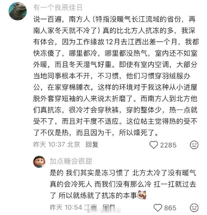所以没有什么感同身受,只有去过南方的北方人,和去过北方的南方人,才有资格说话。其他人相当于不懂装懂,别一味批判了