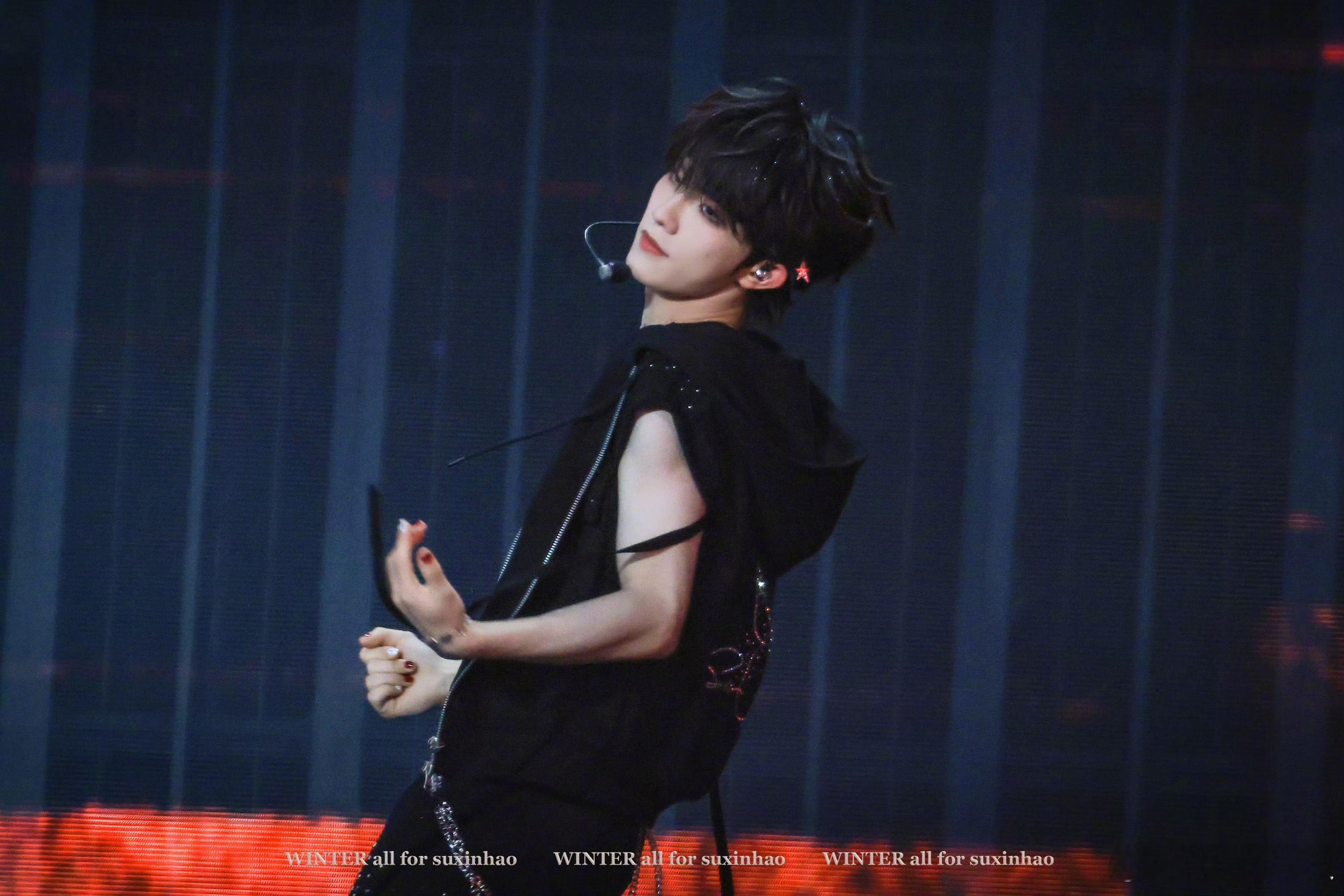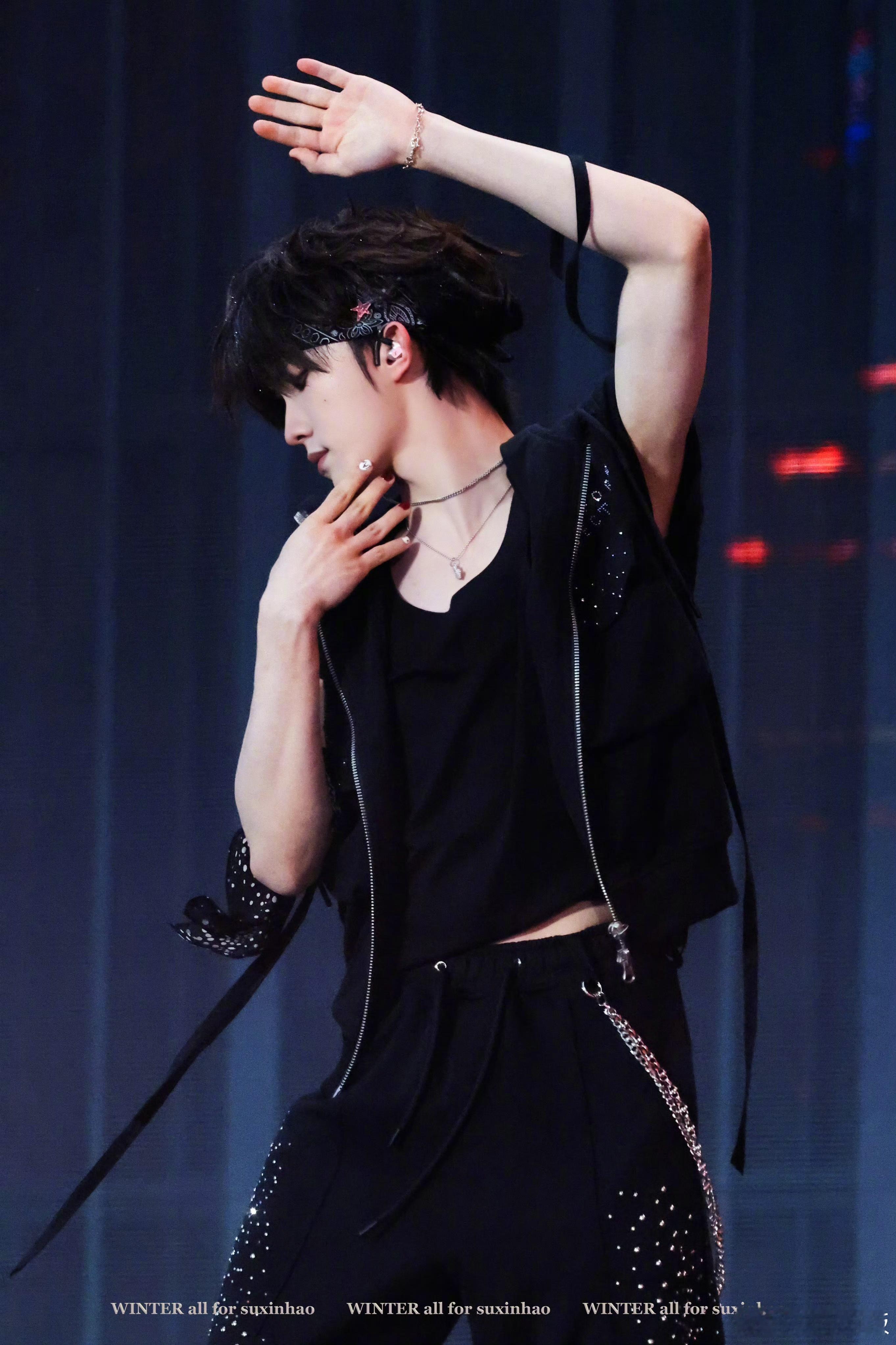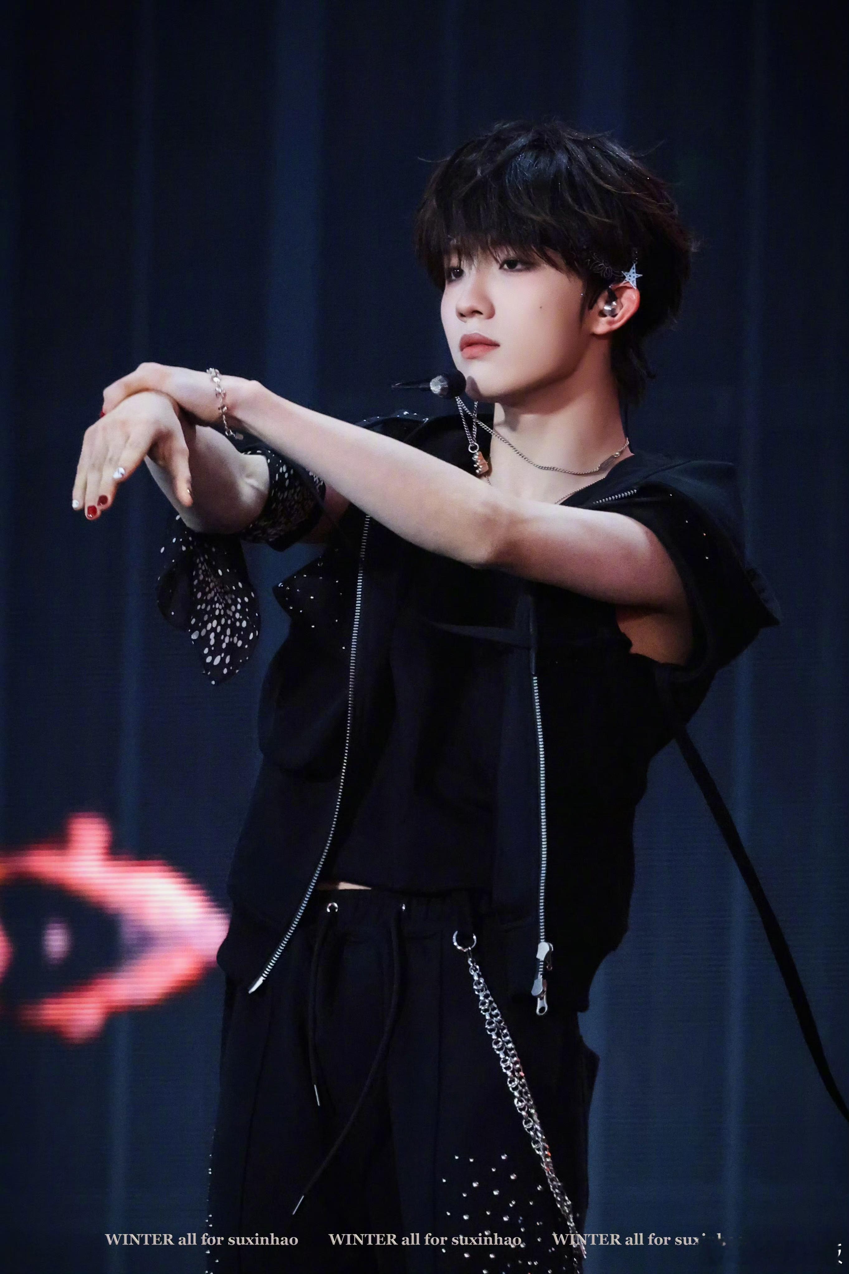 苏新皓无袖满分男 这次造型真的好狠🔥黑色无袖马甲酷到不行,肩线一出来就很能打,全包眼线小猫眼一勾,《命》舞台直接野性拉满。