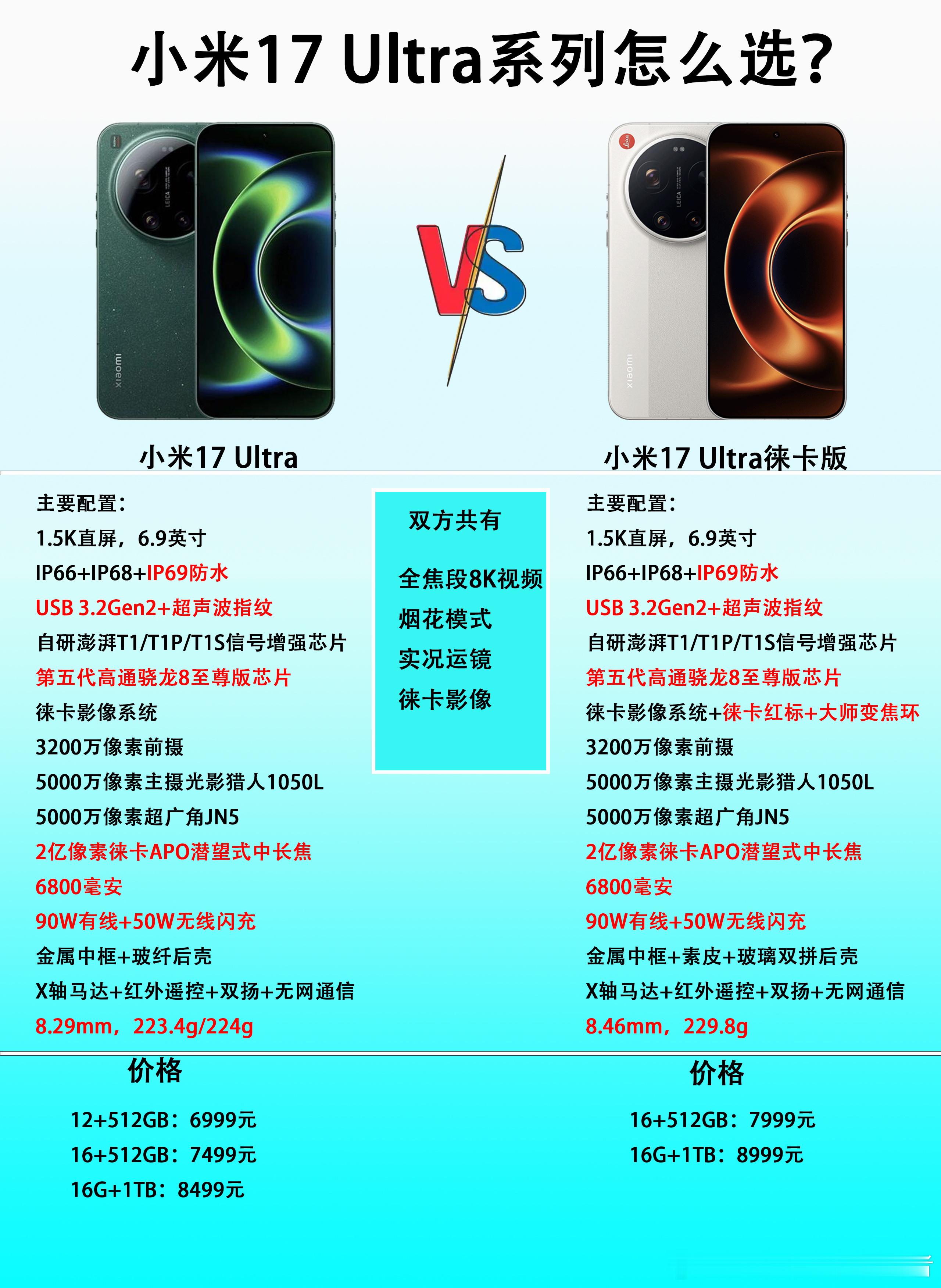 简单看了一小米17 Ultra,聊一聊个人观点,两个版本应该怎么选?小米17 Ultra上手体验了一圈,作为一台高端旗舰手机,设计我认为是优秀的。我比较喜欢这种圆形镜头模组的设计,四款颜色只看到了三款,最满意的配色还是白色,这个耐看。绿色的话相对来说比较有特色。发布会宣传的连续变焦2亿像素潜望式中长焦,现场试了一下效果确实不错。放大十倍,十几倍都很清晰,比我预期的好不少,变焦切换也挺快的。唯一遗憾,没有体验徕卡版,因为没有样机。如果你是为了相机买这台手机那还是合适的,我的观点是,6999元的入门12GB+512GB版本以及徕卡版两个版本值得推荐。入门版对大部分用户都够用了,同时还能节省部分支出;徕卡版多500元还是划算的,因为徕卡红标和变焦环带来的情绪价值不一样。买高配的用户一般预算都比较充足,所以我建议是直接选徕卡版。除非说预算差一点或者对徕卡标不感兴趣,那可以选择普通版。但还是那句话,不选徕卡版的话总感觉差点意思,不如直接一步到位。
