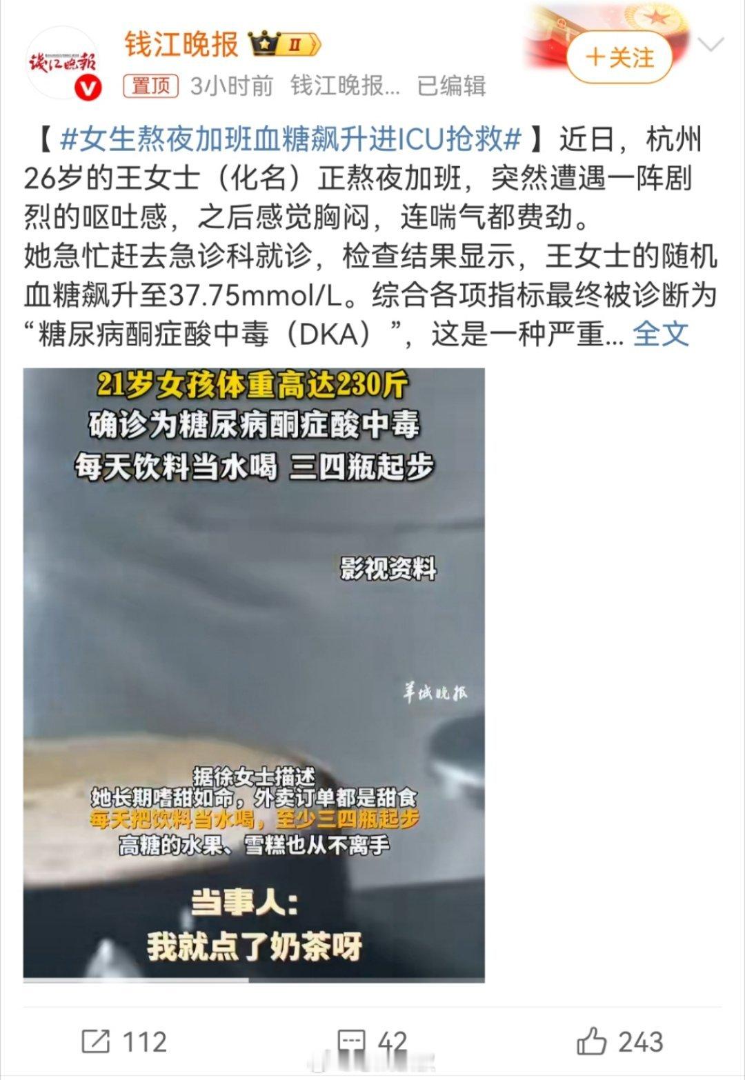 女生熬夜加班血糖飙升进ICU抢救只喝饮料不喝水,老是吃高糖水果和雪糕这种不健康的生活习惯肯定是不对的。还有就是,熬夜加班更不对,更不值得。什么工作比自己的生命和健康还重要啊? 呼伦贝尔