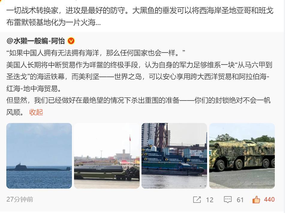 🔻能战,方能止战。进攻是最好的防守。🔻PLA正在建设针对美国本土乃至应对美国可能航运封锁的常规战略进攻能力。🔻就像今年2025年的贸易战,为什么特朗普两次吃瘪主动提出了暂时休战?是因为我们跟日本韩国越南一样给美国人赔款割让利益吗?不!是坚决的对等还击!让美国承受不了我们的还击,才主动提出的和谈休战。🔻而对等还击的能力是凭空变出来的吗?是我们过去数十年时间中默默布局,在大豆产业和稀土产业中取得了主动权优势,才有了今年贸易战可以打的牌。🔻军事上,我们正在获取对美国本土的常规武器打击能力,以及摧毁美国贸易航运的能力,你如果玩黑的,那东大就掀桌子,难做就别做了。