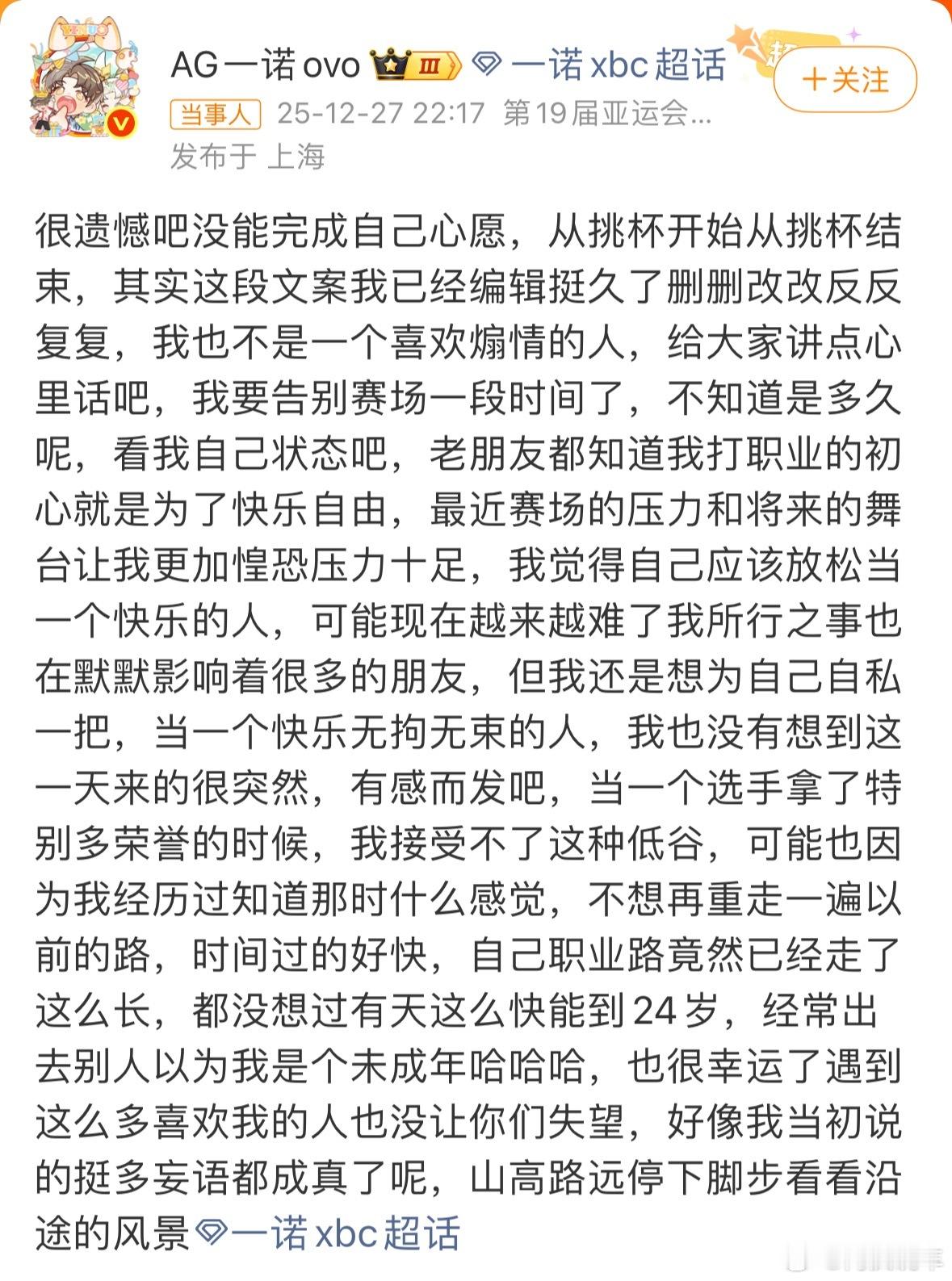 一诺暂时告别赛场Hero战胜AG,这波确实有点爆冷了,也直接让AG无缘挑杯决赛。没想到一诺直接发文要暂时告别赛场了,本意是一诺希望拿大满贯,但是最近这段时间压力大于了快乐。不过还好,只是暂时告别,肯定还会回归的,今天因为有事儿看了几个比赛片段,感觉AG的表现确实差点意思,估计一诺这场比赛心态也有点崩。