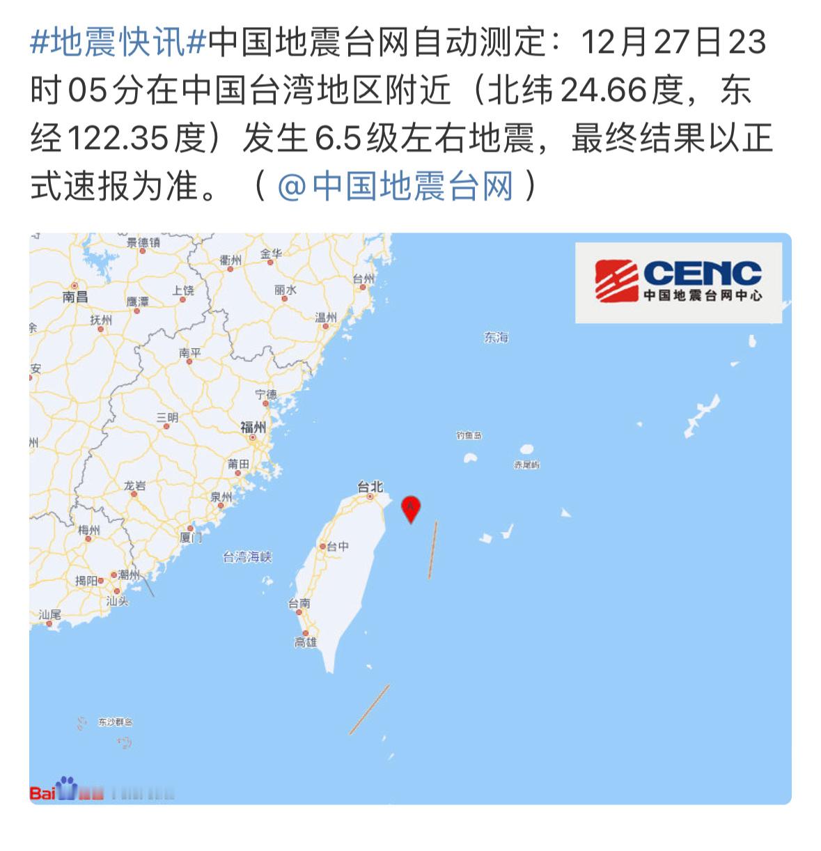 中国台湾地区附近6.5级地震了大家注意安全啊!