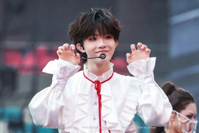 正红色美甲自带高光感,与舞台红海应援遥相呼应,指尖亮色点亮整体造型,既显元气又添酷感,不愧是造型可塑性拉满的少年~