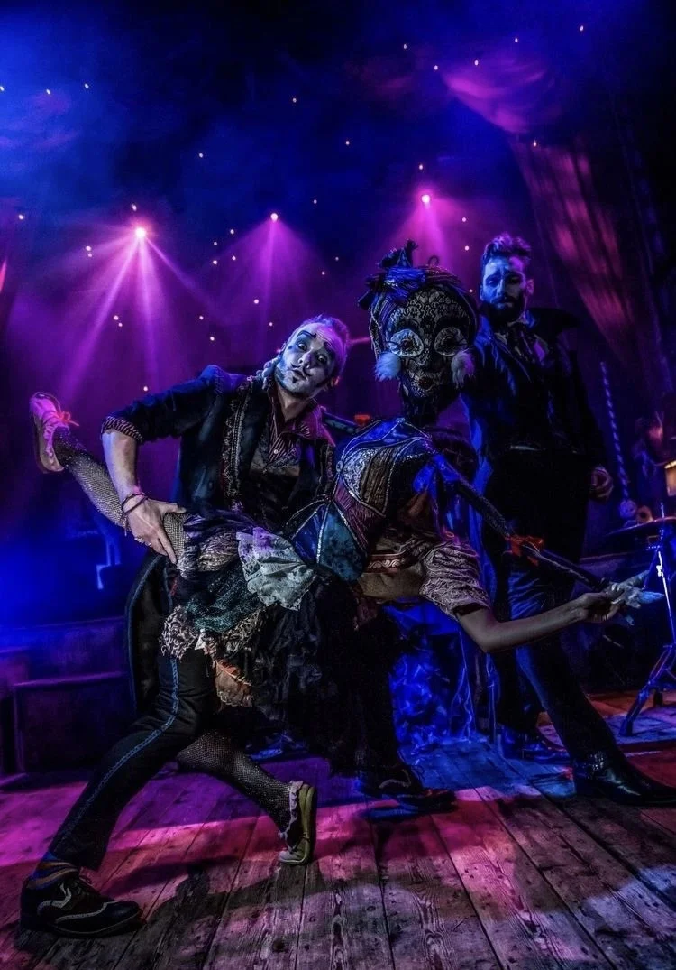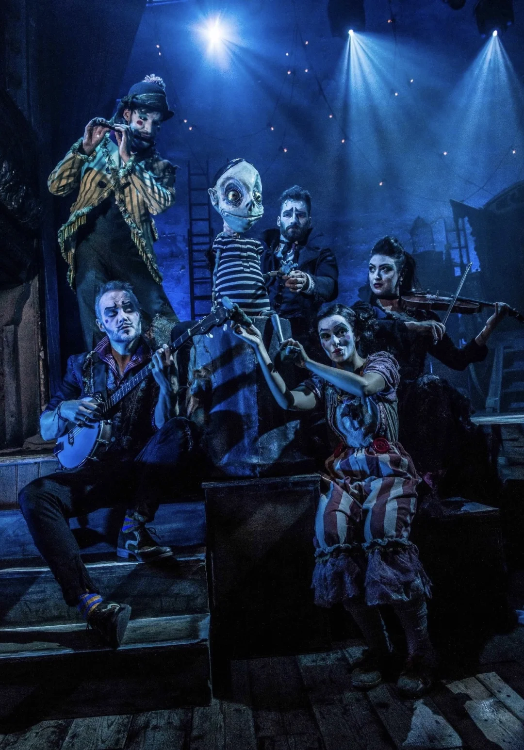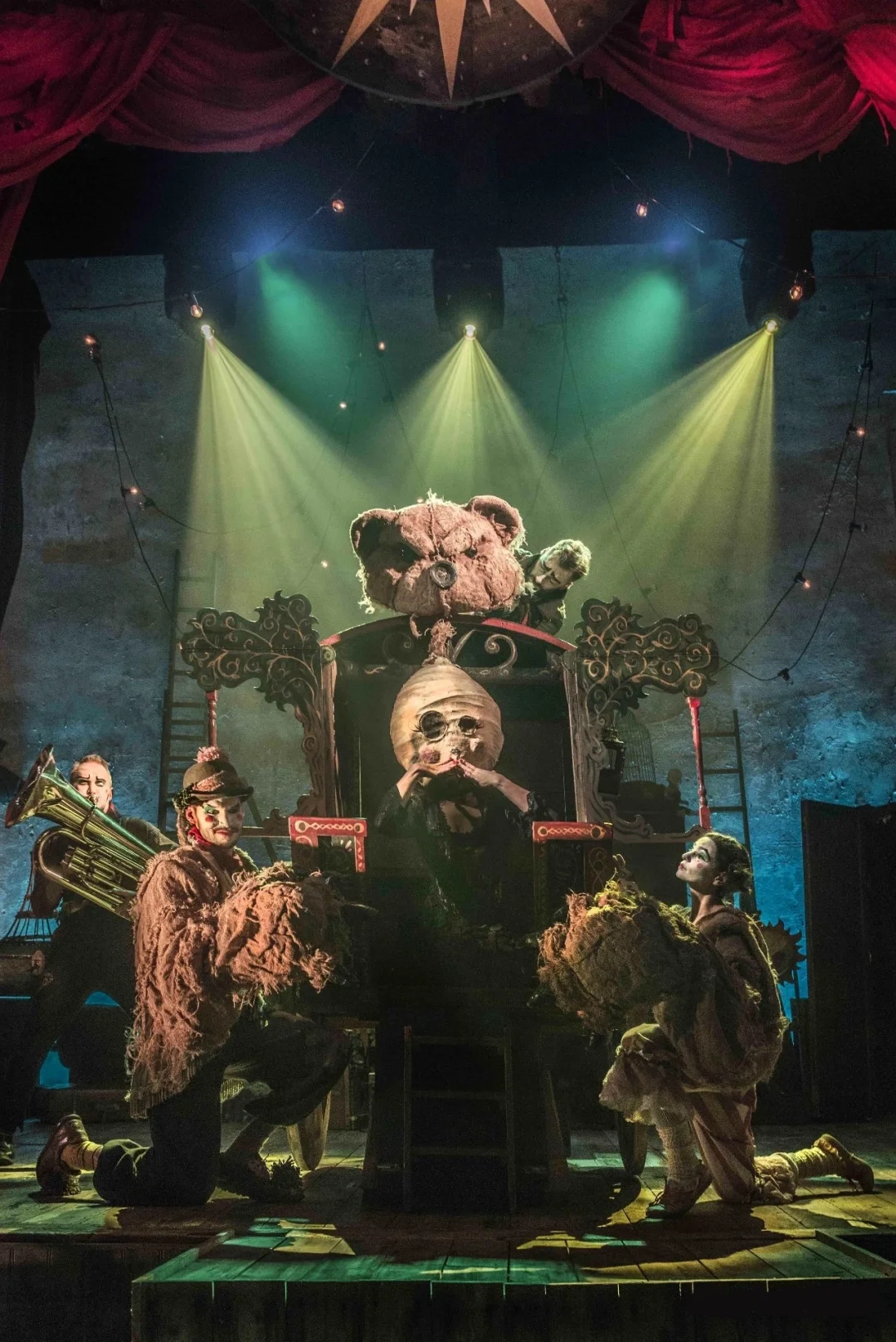 从巨大的、引人注目的红色窗帘、散落的小提琴、各式各样的手提箱、旧玩偶和童话灯来看,它乍一看像是一个儿童玩具盒的内部,但再一看,一旦演员阵容出现,它更像是一个废弃的阁楼或波西米亚式的巴黎公寓。
