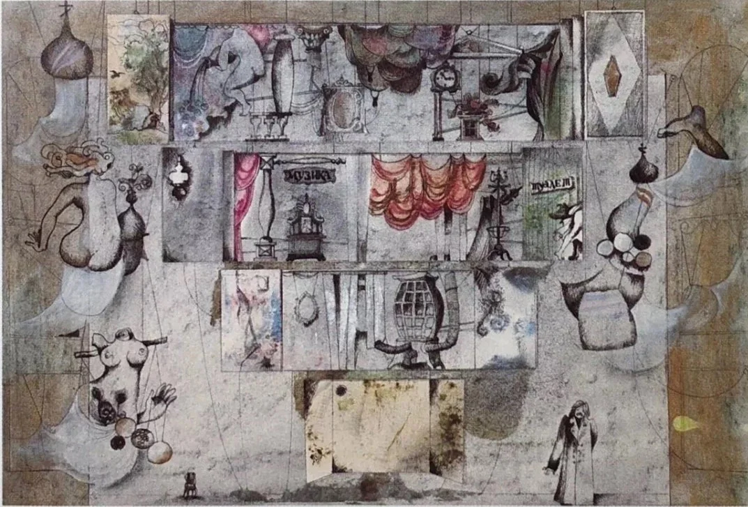 画画的日常 笔记灵感 舞台设计 手绘 手稿 大师 舞美效果图 舞美概念图 Jaroslav Malina曾在他的文章《舞台设计实际上是什么——现在是第十次》提出舞台设计作为一种空间和时间的复合体,不可能存在于演出的整体之外,离开了演出它不能存活。然而,舞美设计展览却能够通过精英文化的领域存留在博物馆和画廊之中,延续着戏剧艺术的生命。