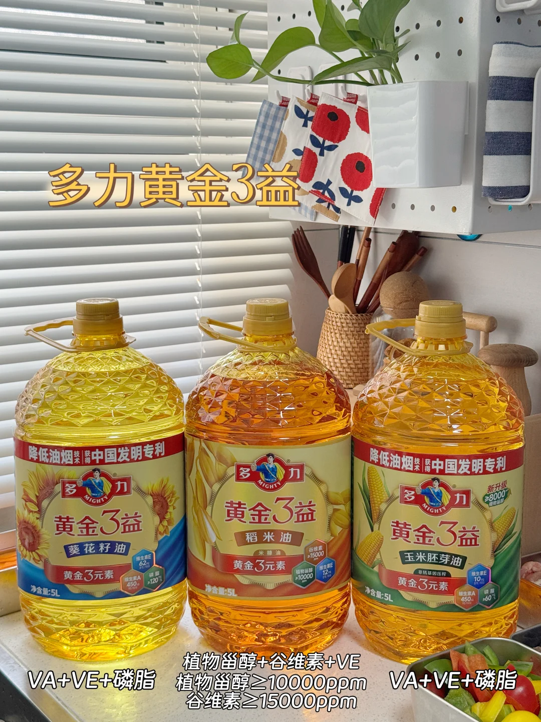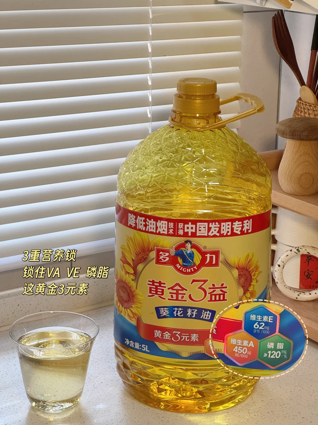 多力黄金3益是多力旗下的高端食用油品牌,健康美味的同时营养丰富,这款油最大的亮点就是它的3重营养锁,牢牢锁住VA VE和磷脂这黄金3元素,健康这块儿多力也是狠狠拿捏了!