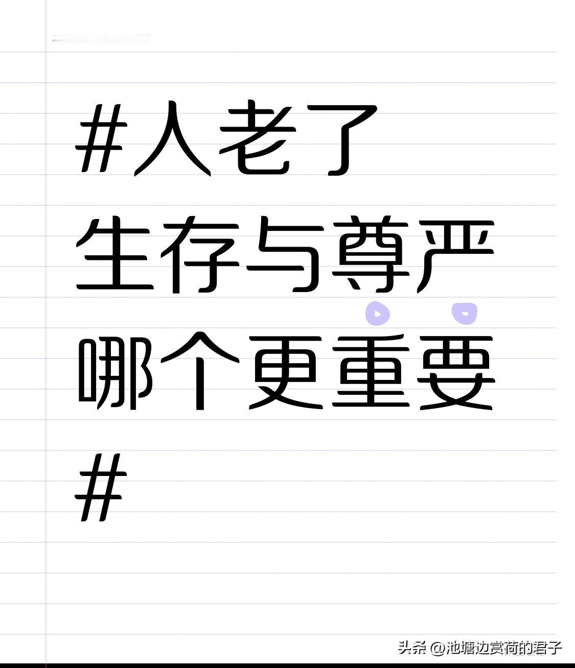 人老了,生存与尊严哪个更重要,这真是个难题。有人觉得“生存面前,尊严一文不值”,也有人高呼“宁可站着死,绝不跪着生”。 86岁的钱理群先生认为,尊严地老去比多活一天更重要。他暮年仍在养老社区做学术研究、创作,写了500多万字书稿。但从另一个角度看,生存是尊严的根基。没有生存保障,谈尊严就像空中楼阁。就像经典著作所说,生存是生命底色,尊严是生命灵魂,最高智慧是带着尊严好好活着。所以,人老了,二者相辅相成,缺一不可。