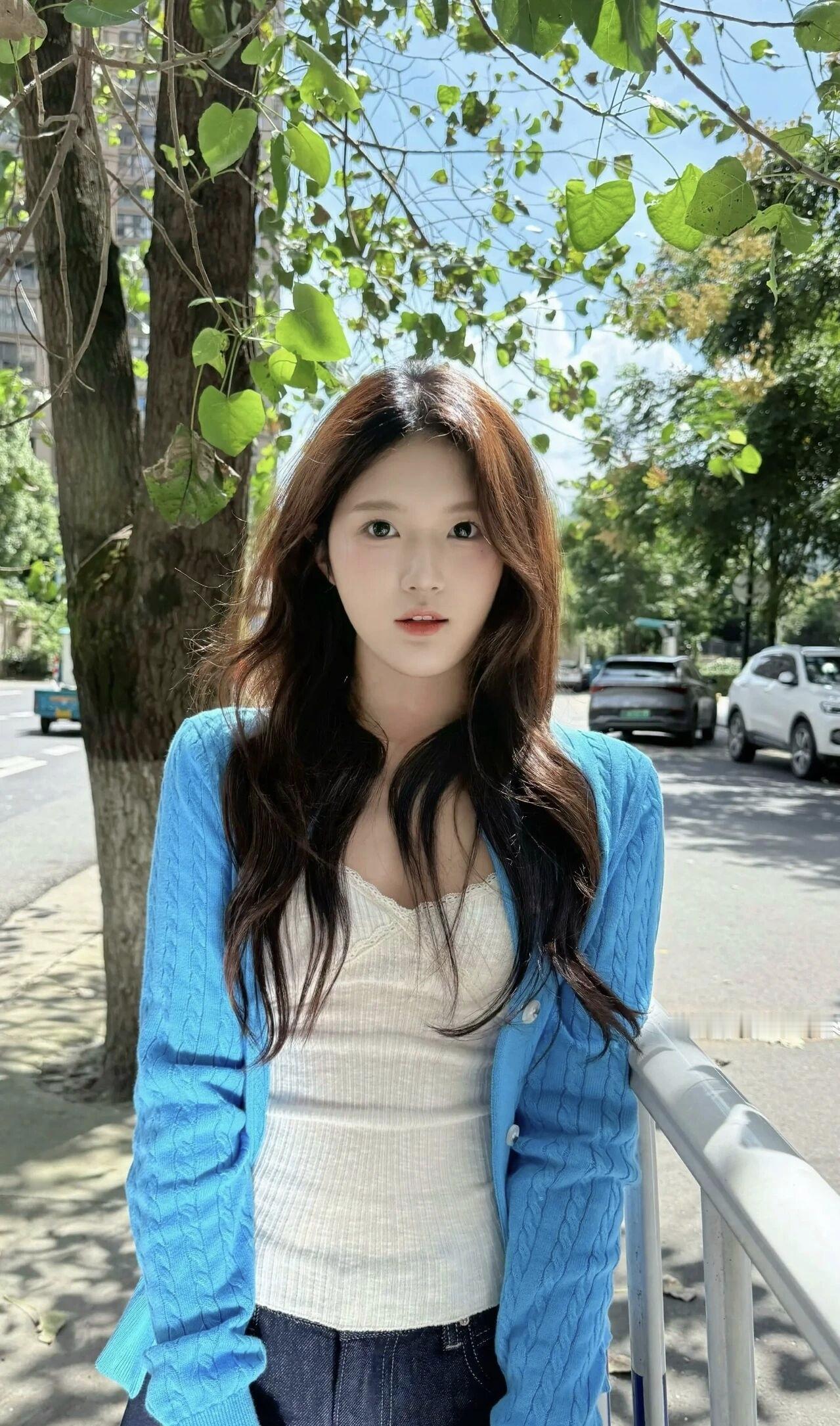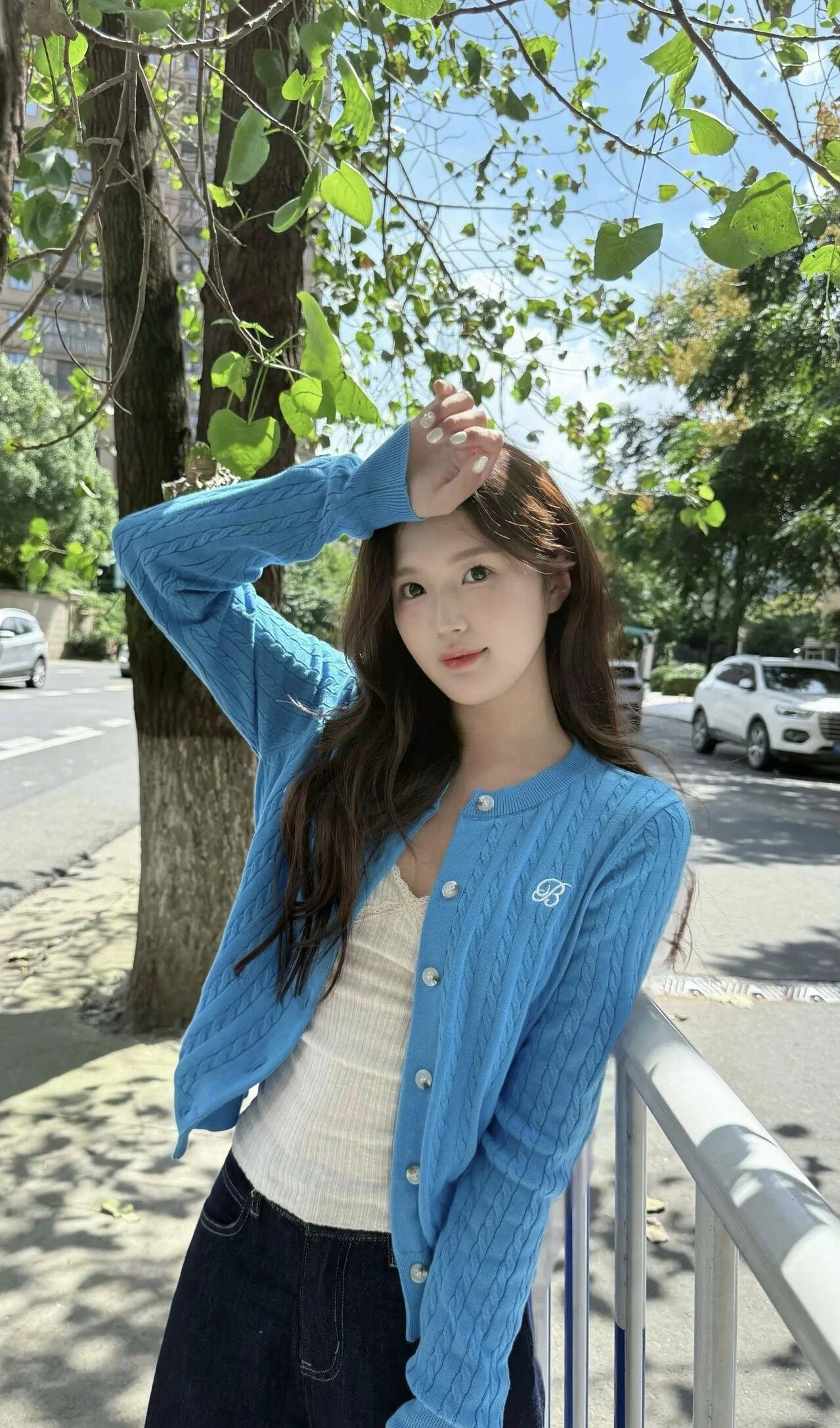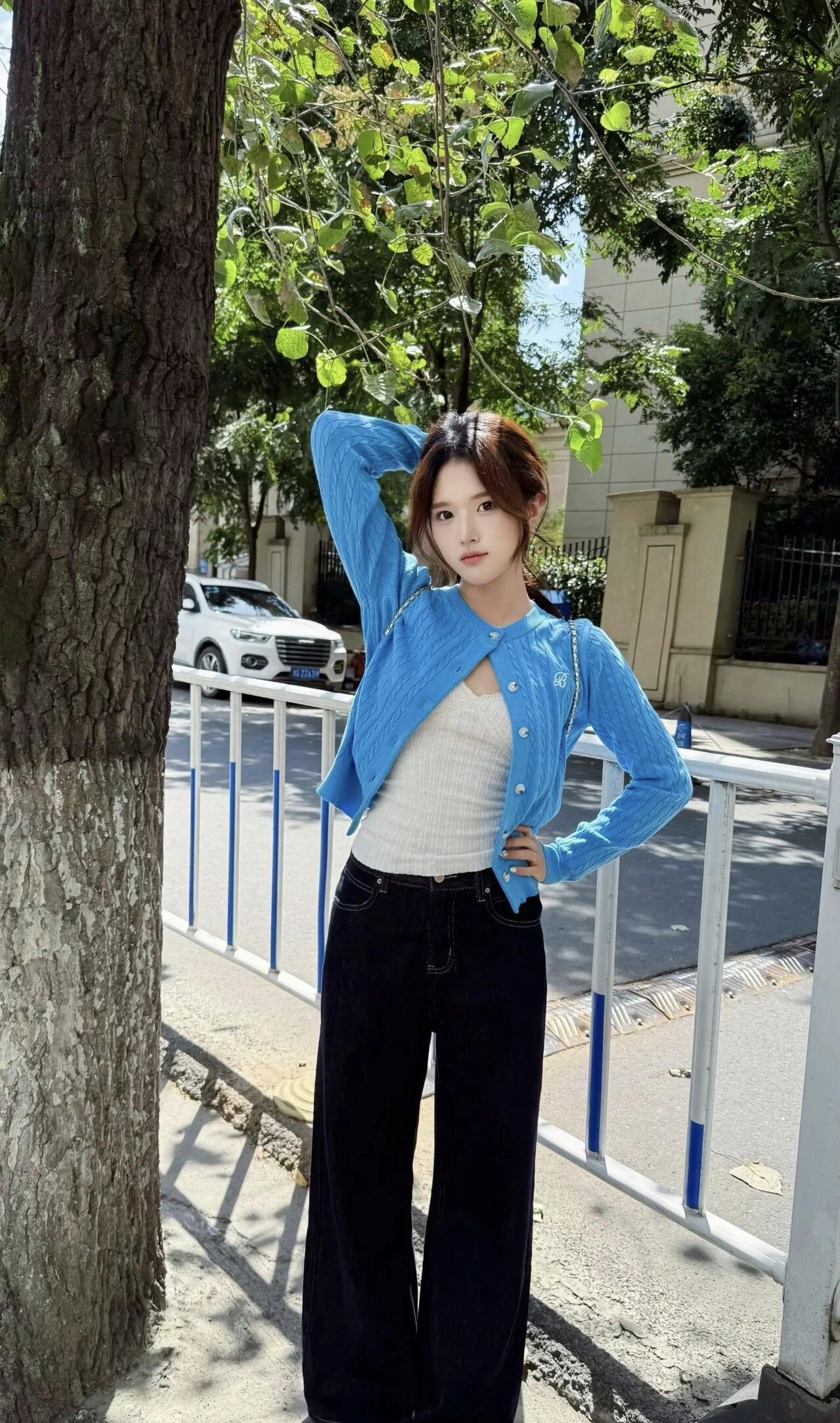 蓝天绿树配克莱因蓝,是属于秋日的清爽浪漫呀