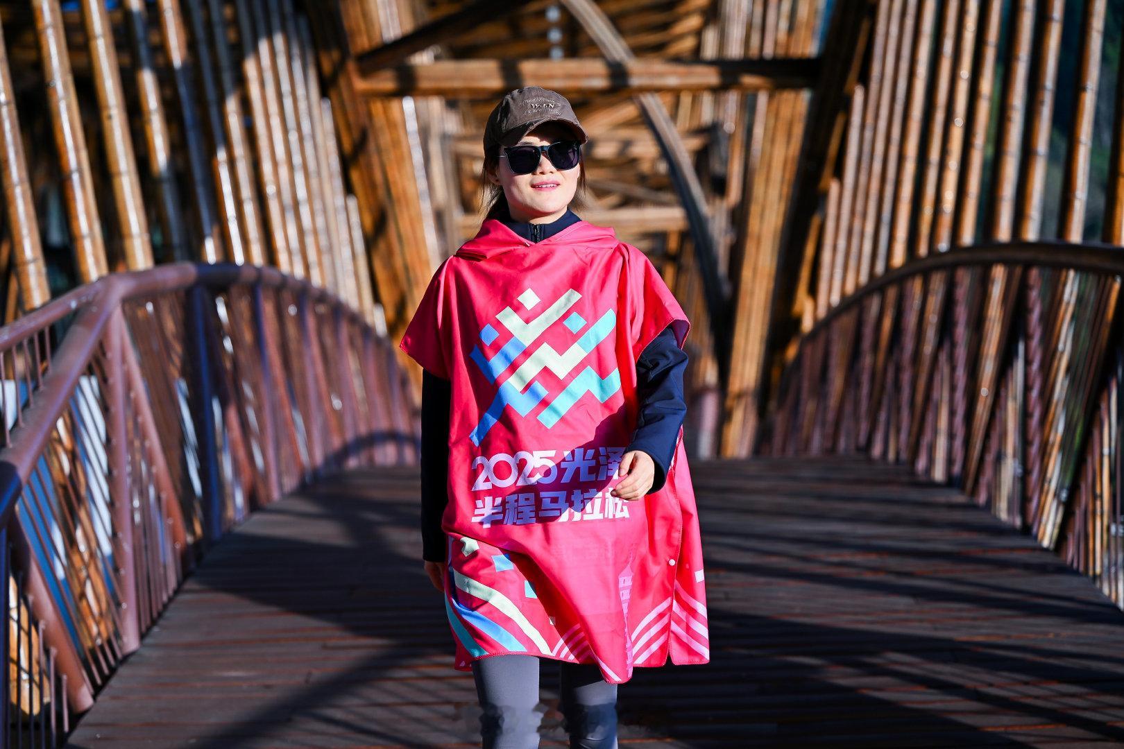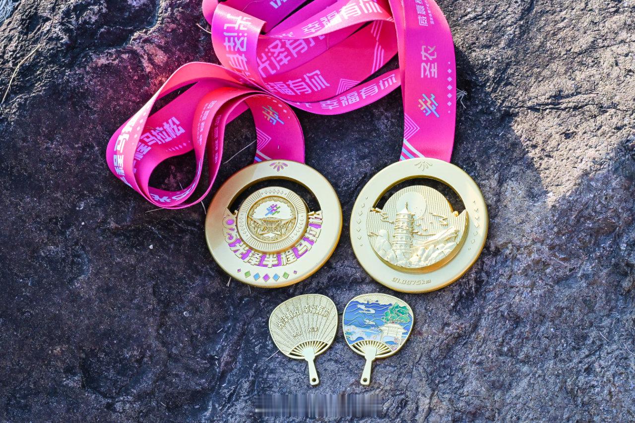 这个光泽半程马拉松的logo也太西安了吧?不过奖牌有点儿意思,里面还藏了把扇子。